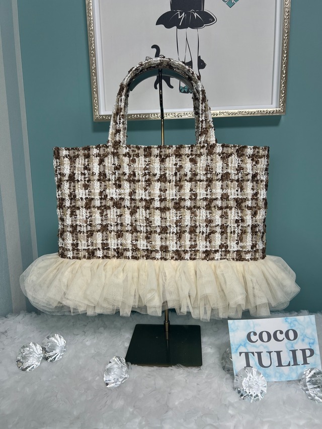 ブラウンツイードドレスバッグ【2段チュールフリル】