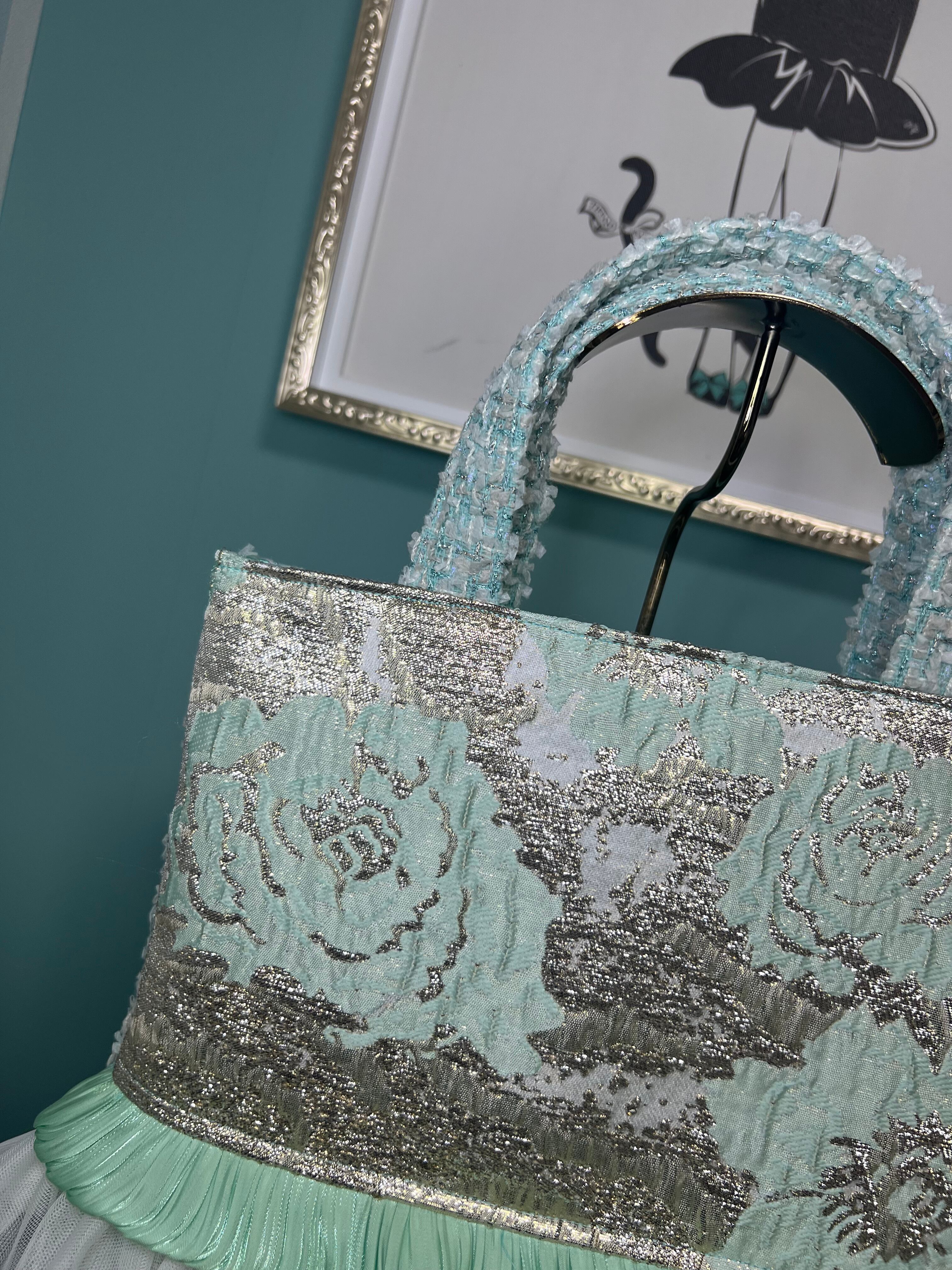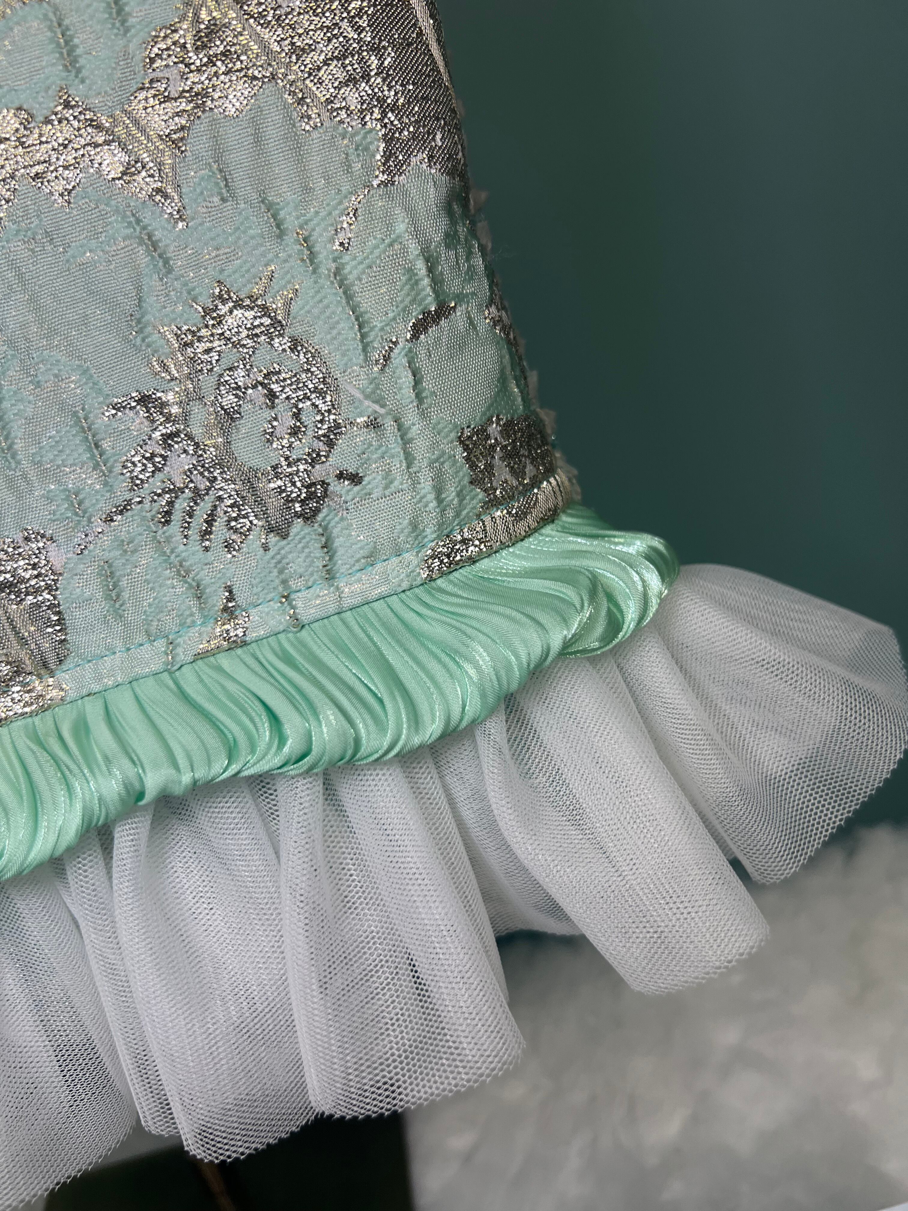 ジャガード✖️ミントグリーン ドレスバッグプリーツフリル【S】