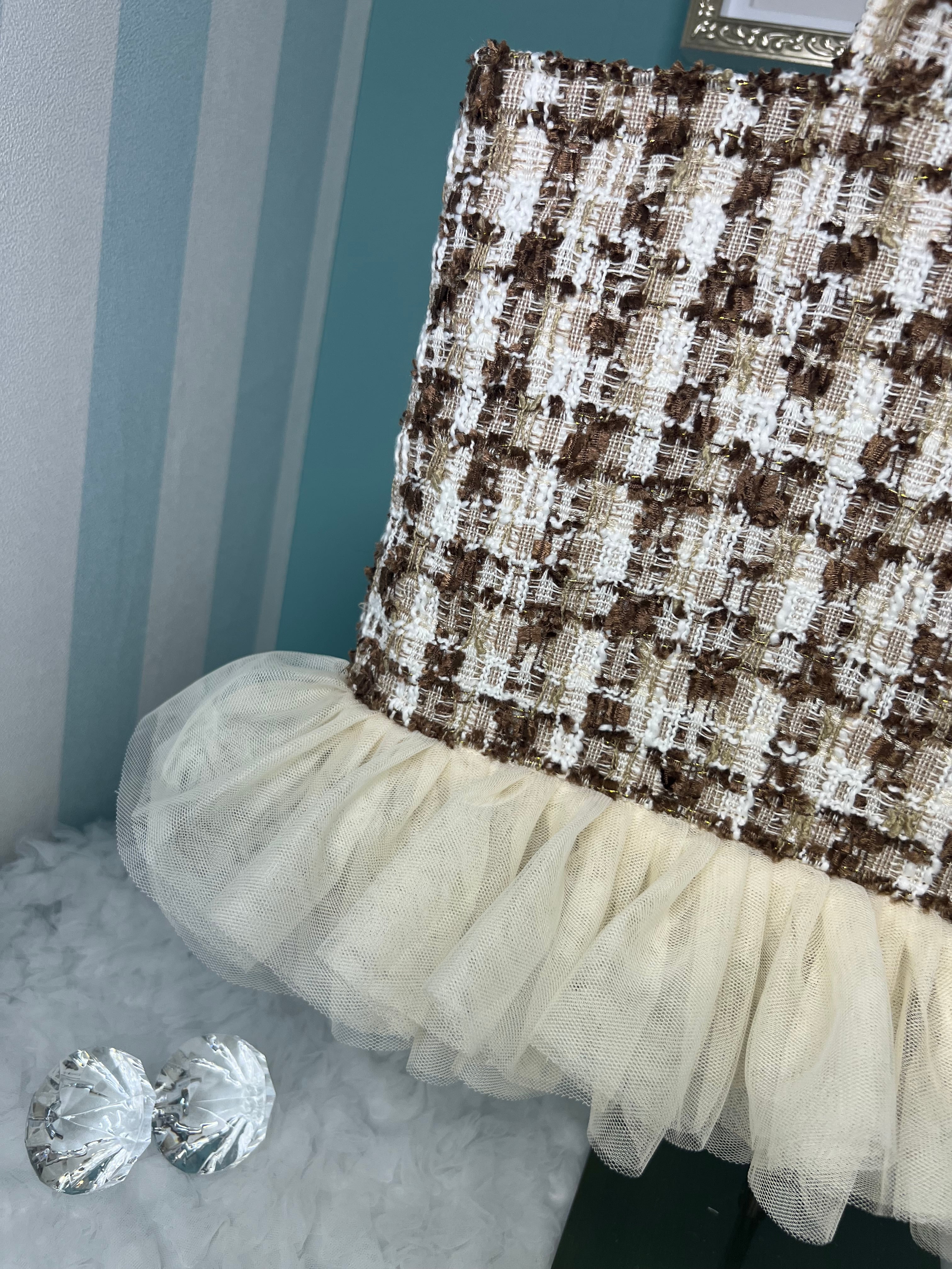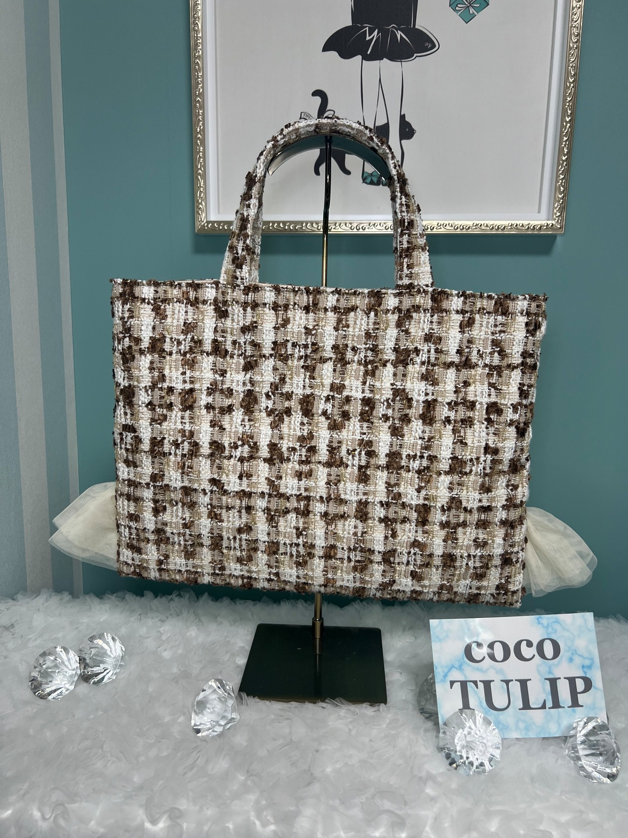ブラウンツイードドレスバッグ【2段チュールフリル】