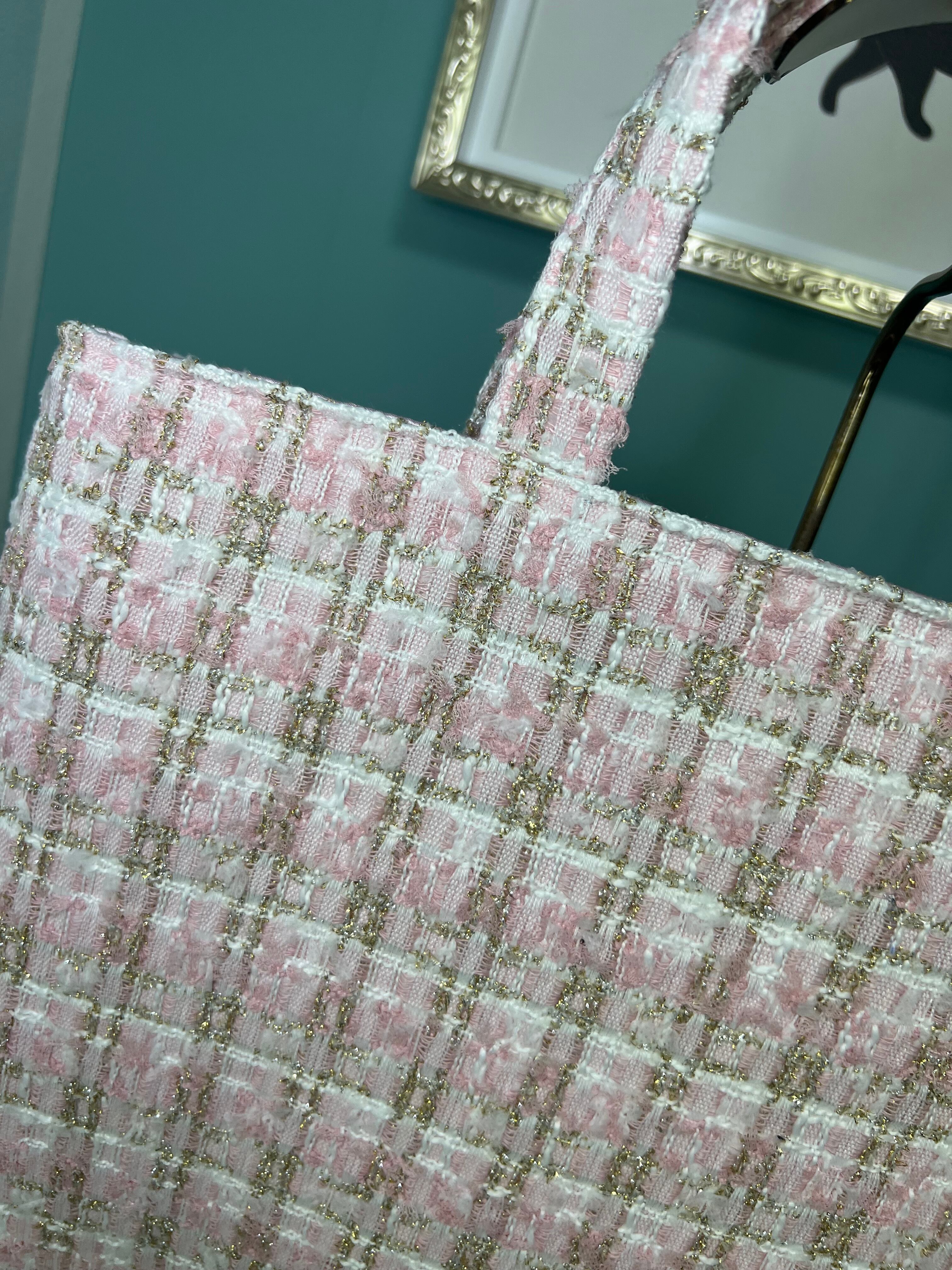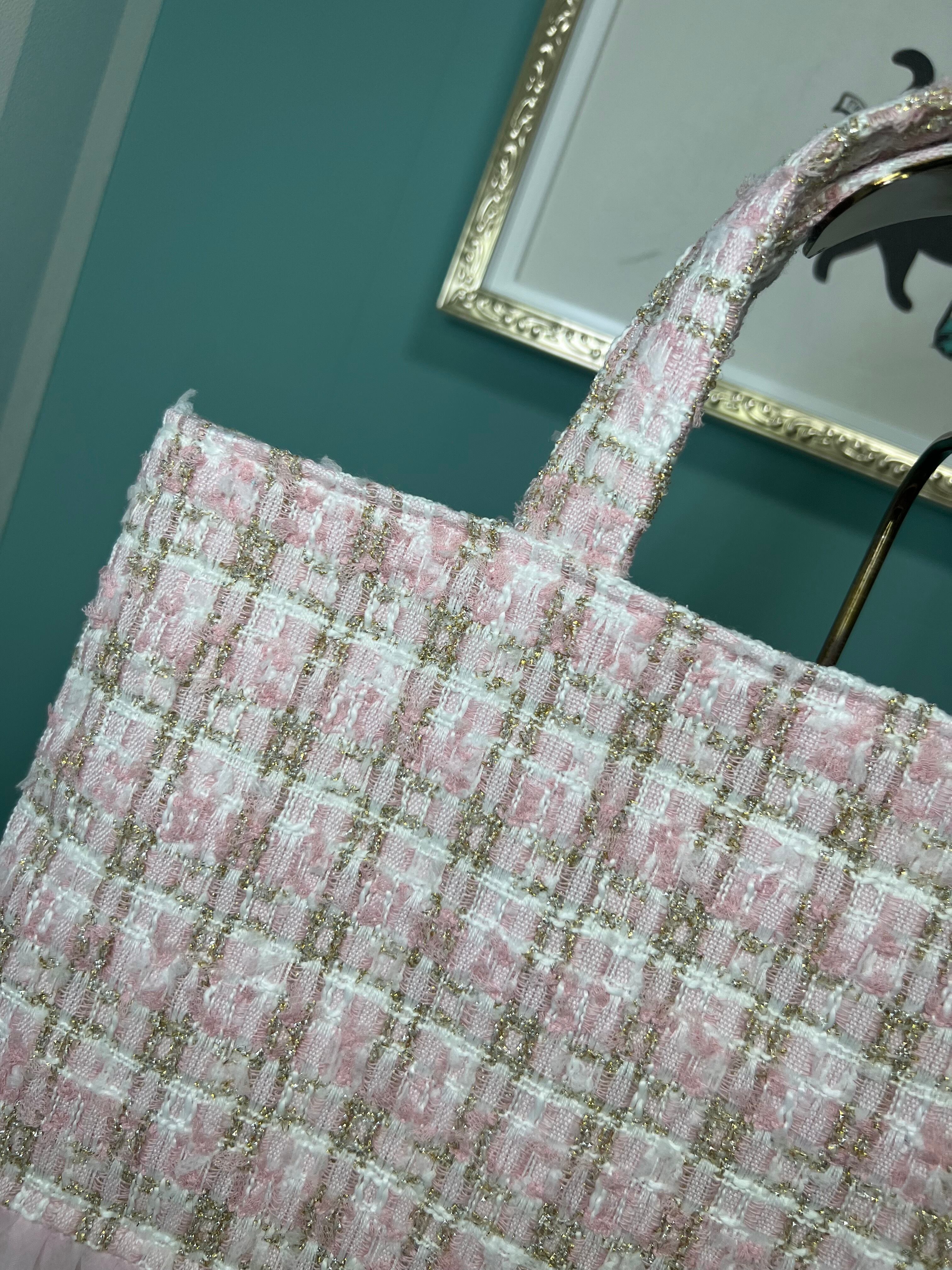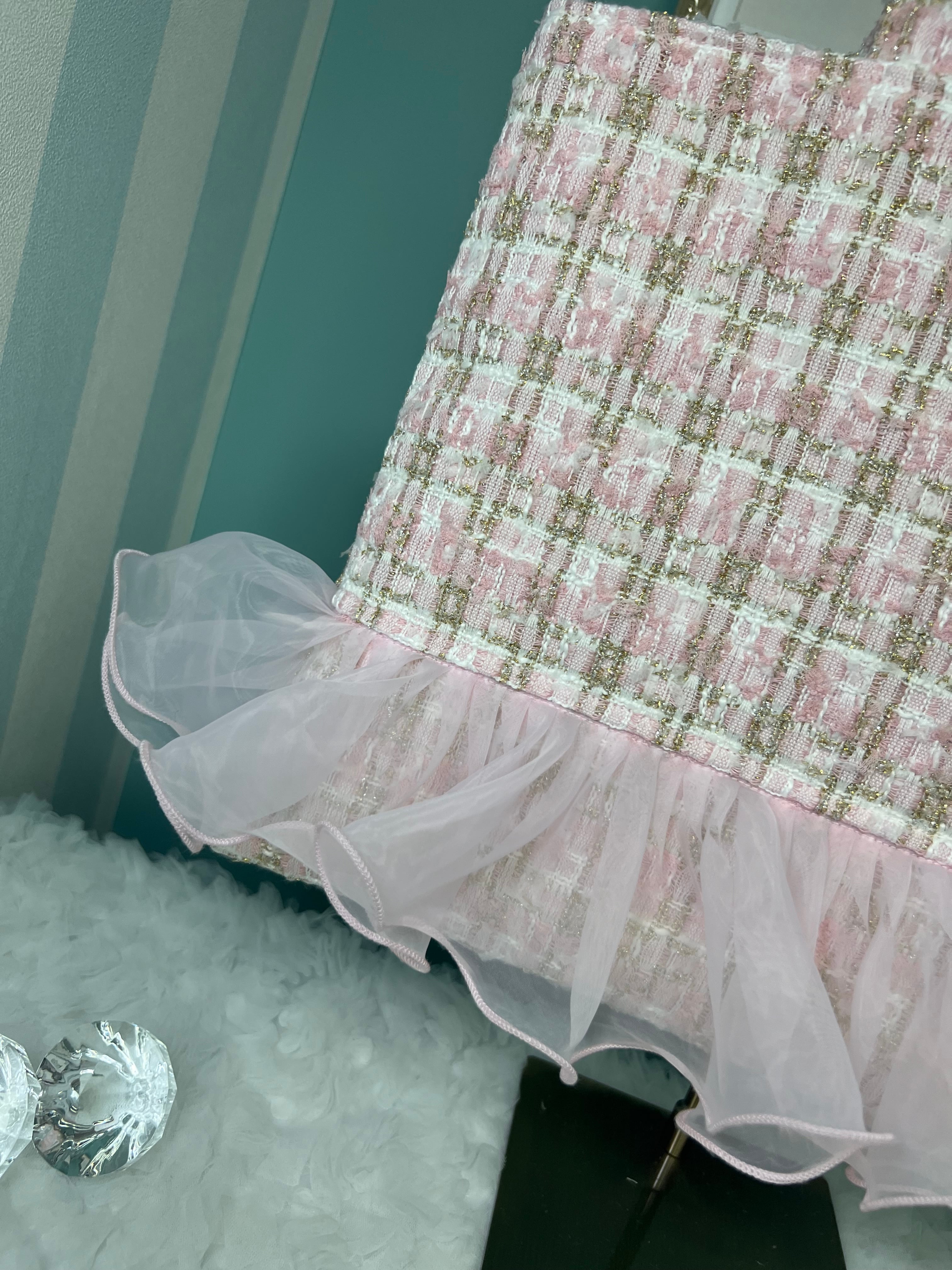 ピンクツイードドレスバッグ【オーガンジーフリル】