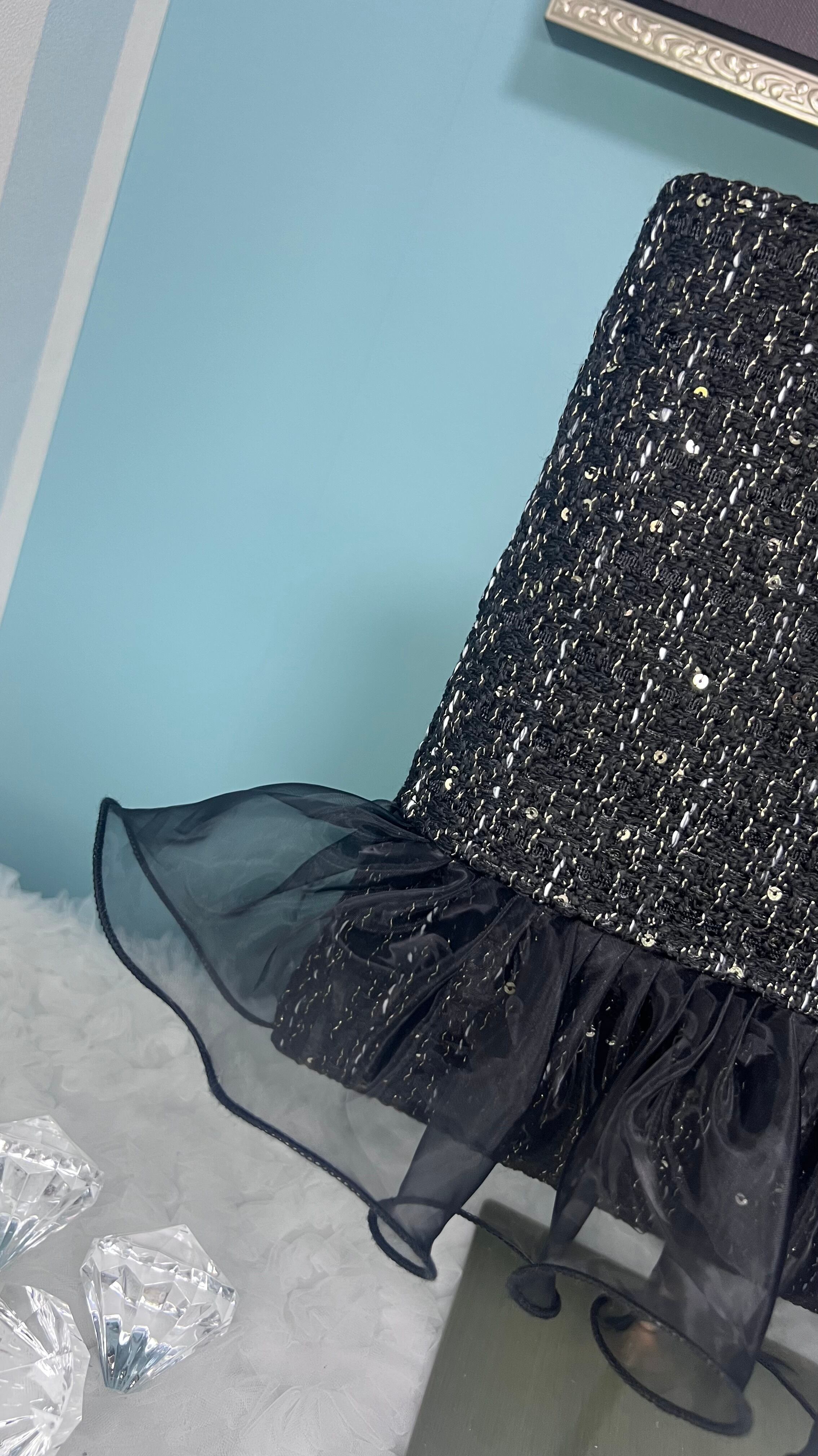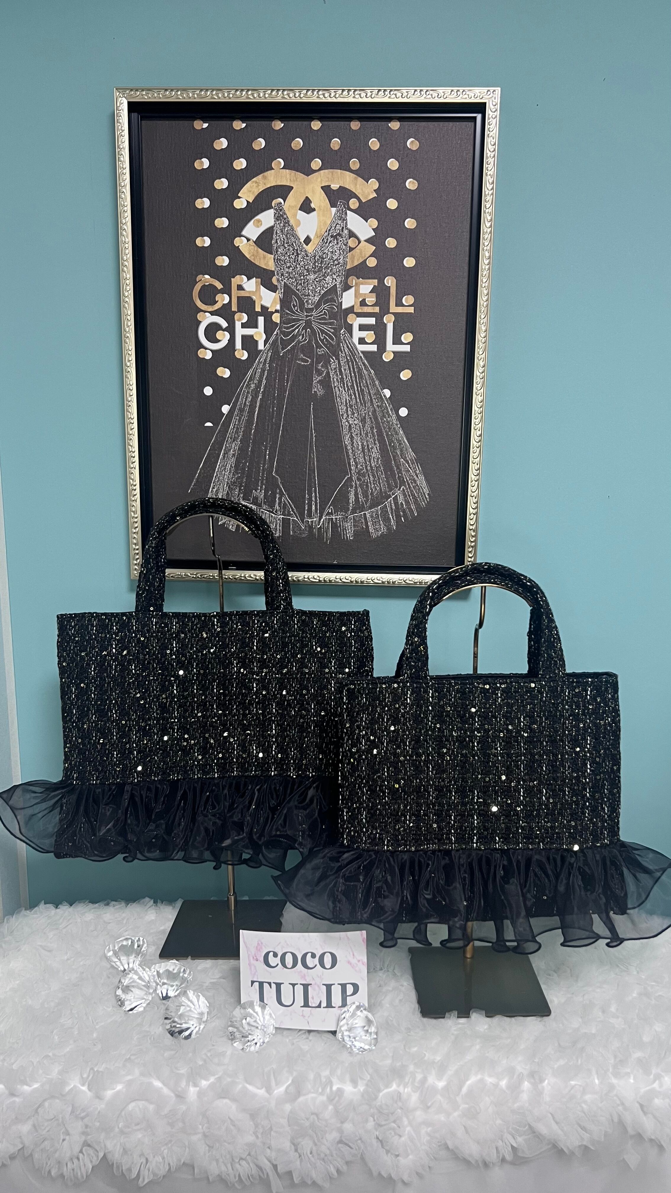 キラキラブラックツイードドレスバッグS【オーガンジーフリル】
