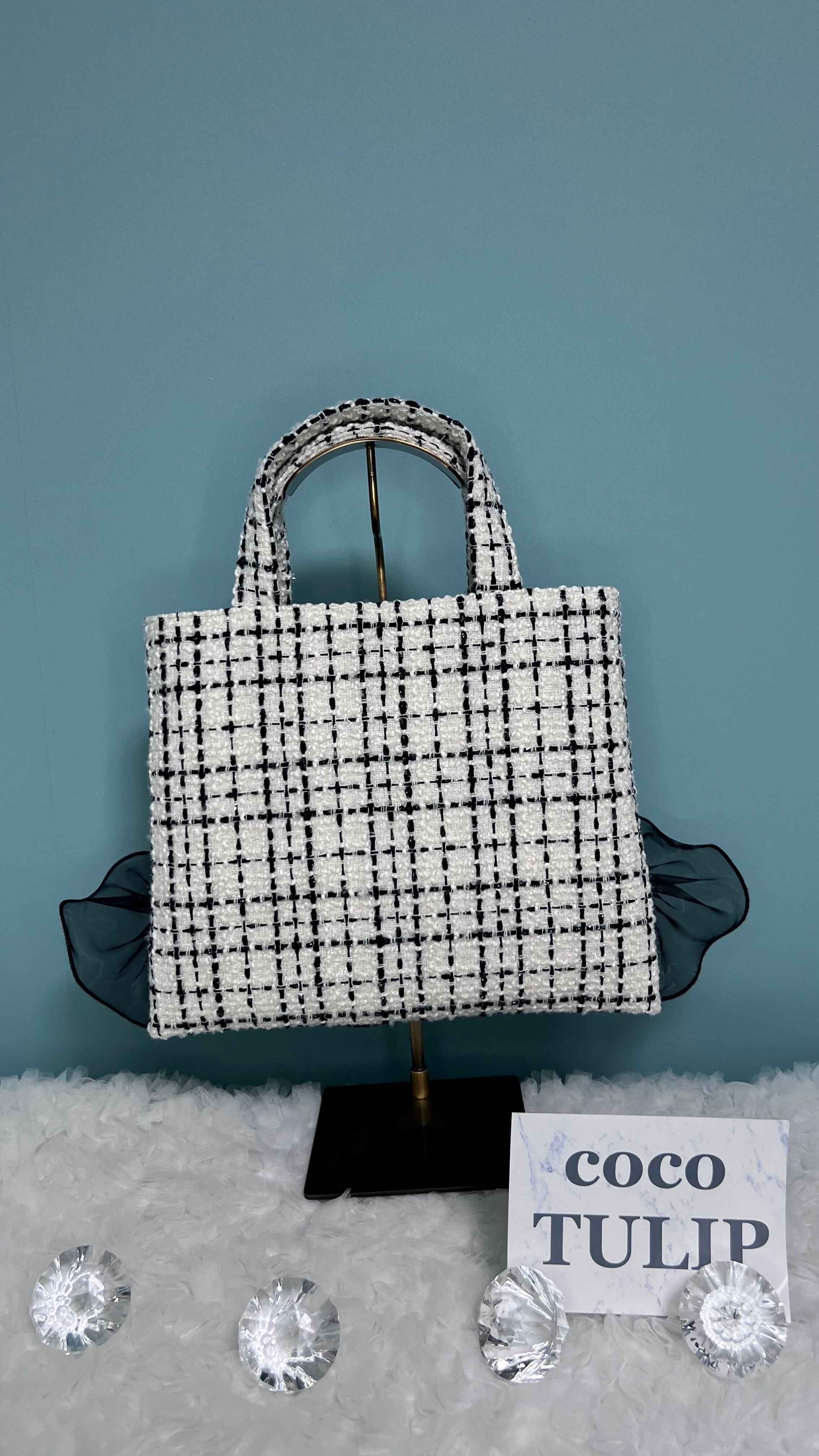 ホワイトチェックツイードドレスバッグS【オーガンジーフリル】