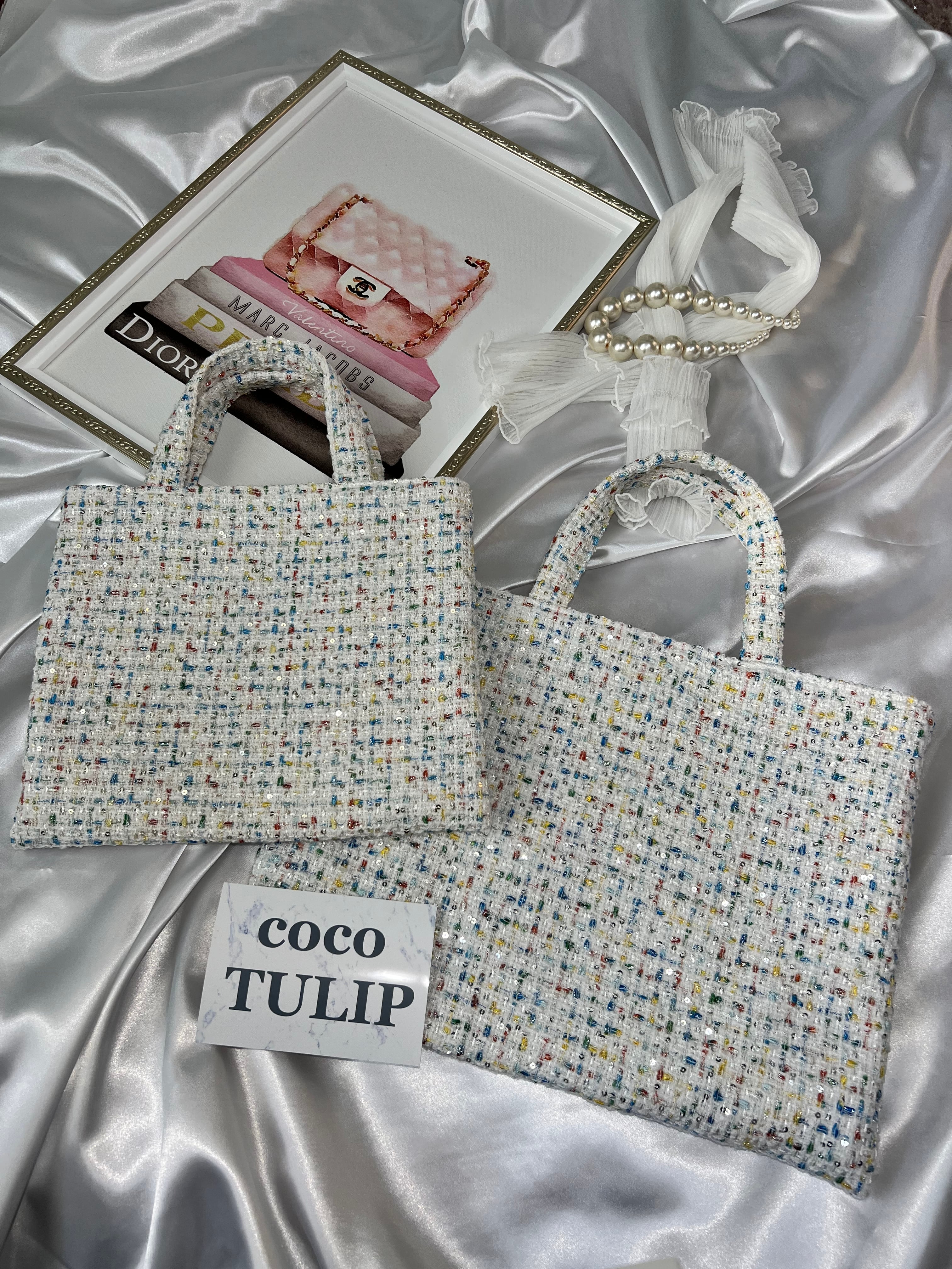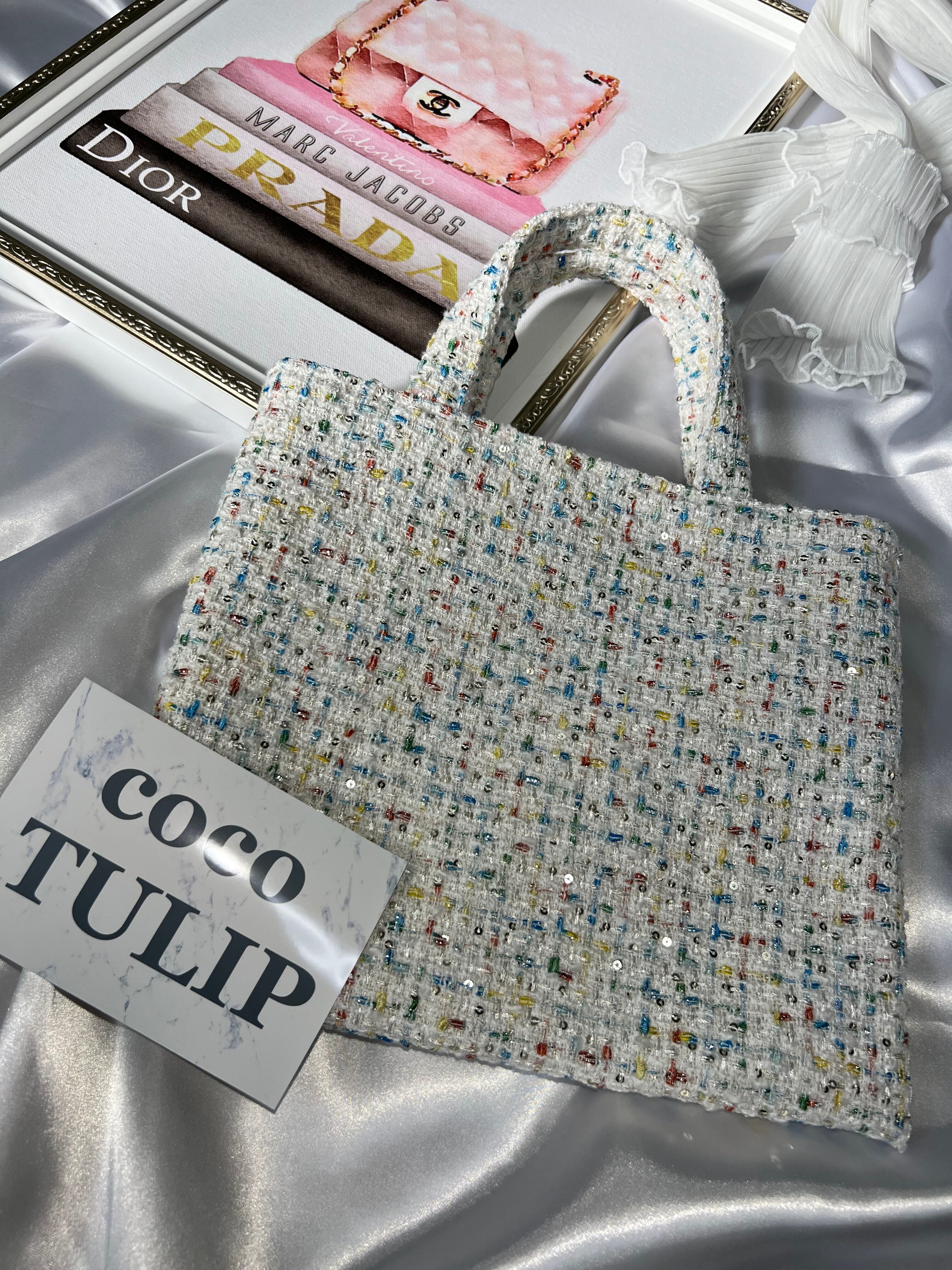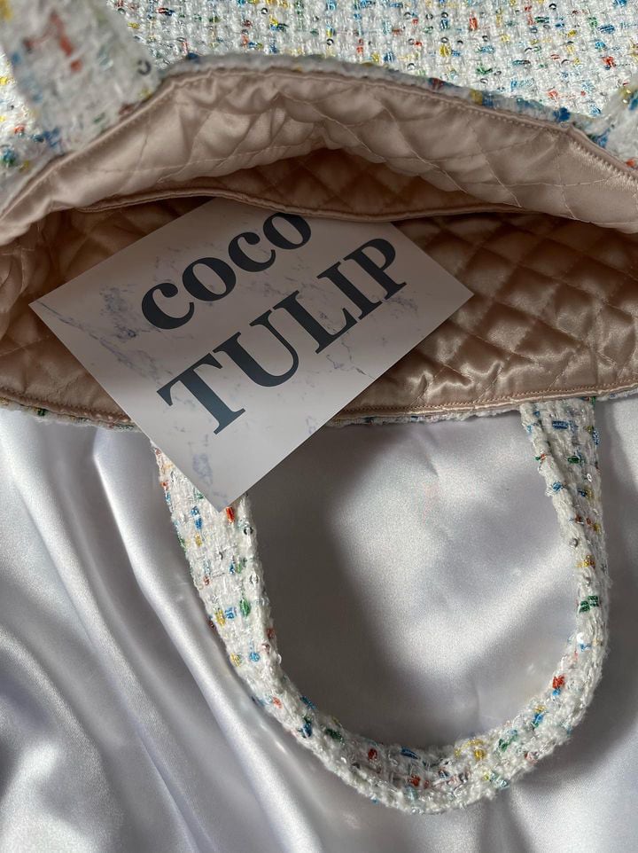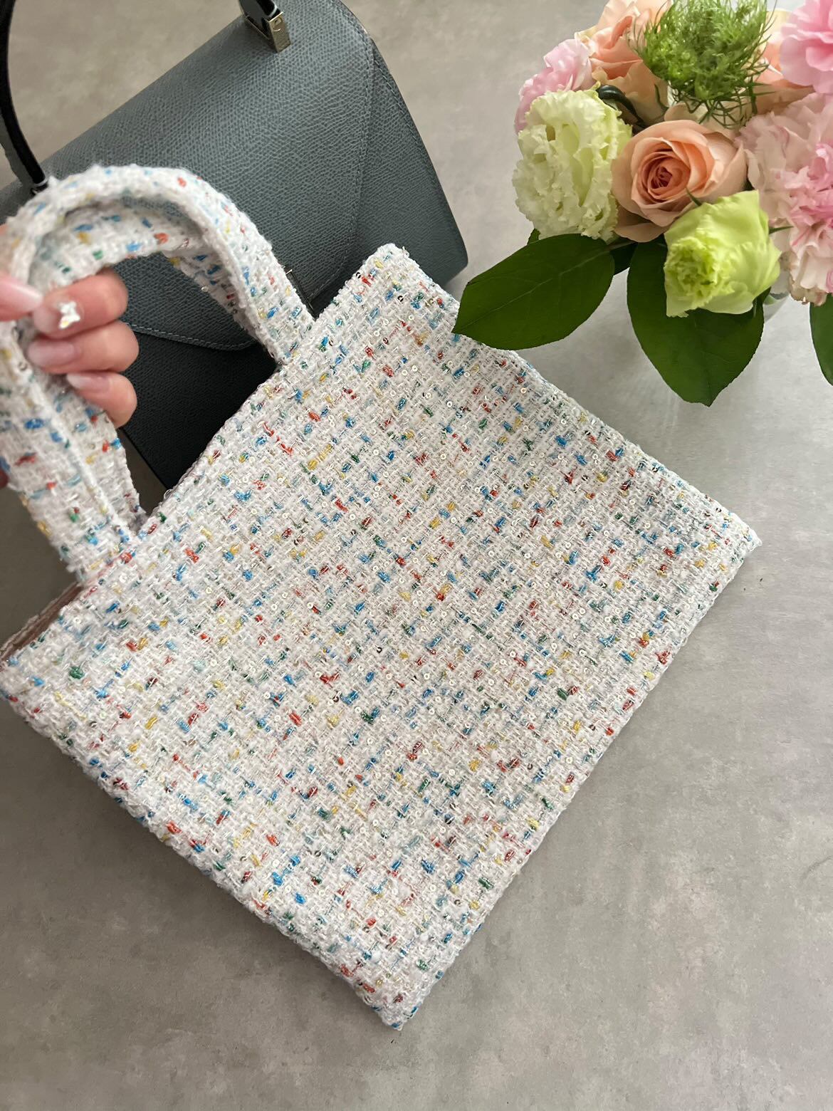 【white S】裏地:ベージュ ツイードバッグ