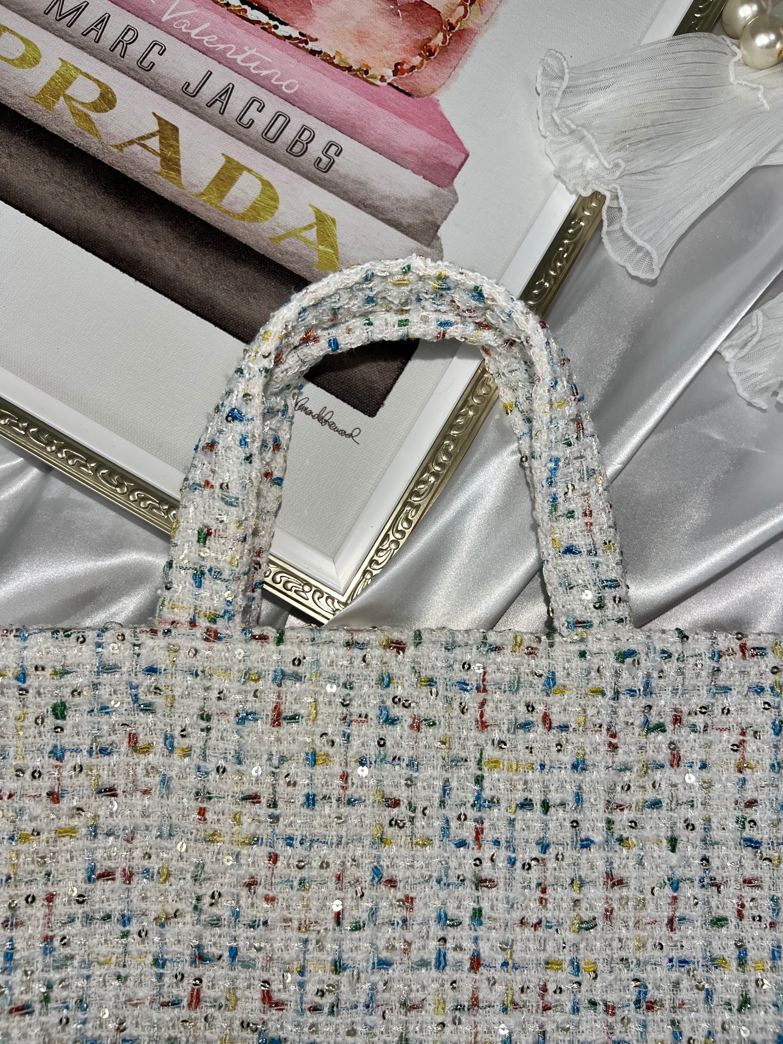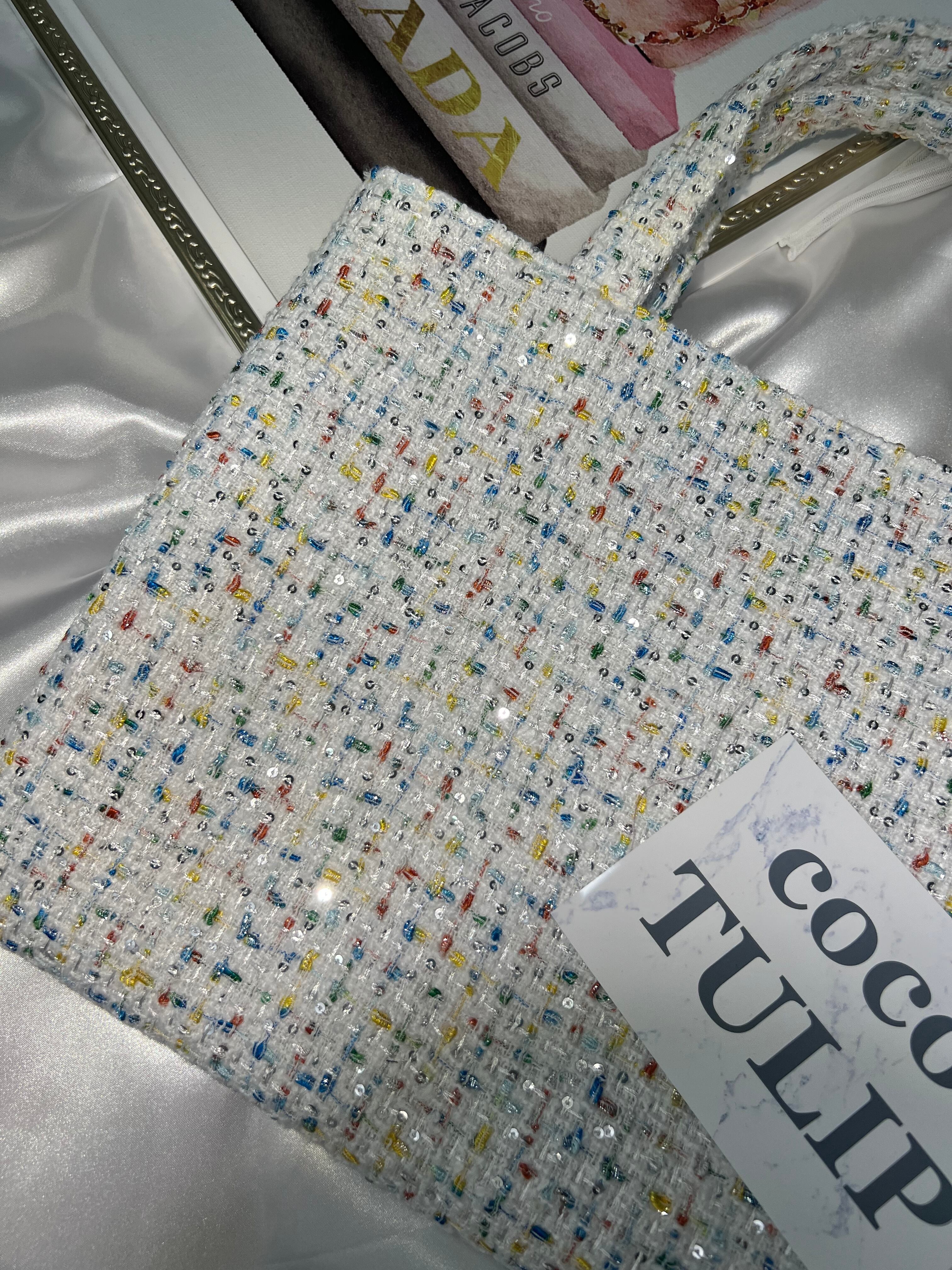 【white M】裏地:ベージュ ツイードバッグ