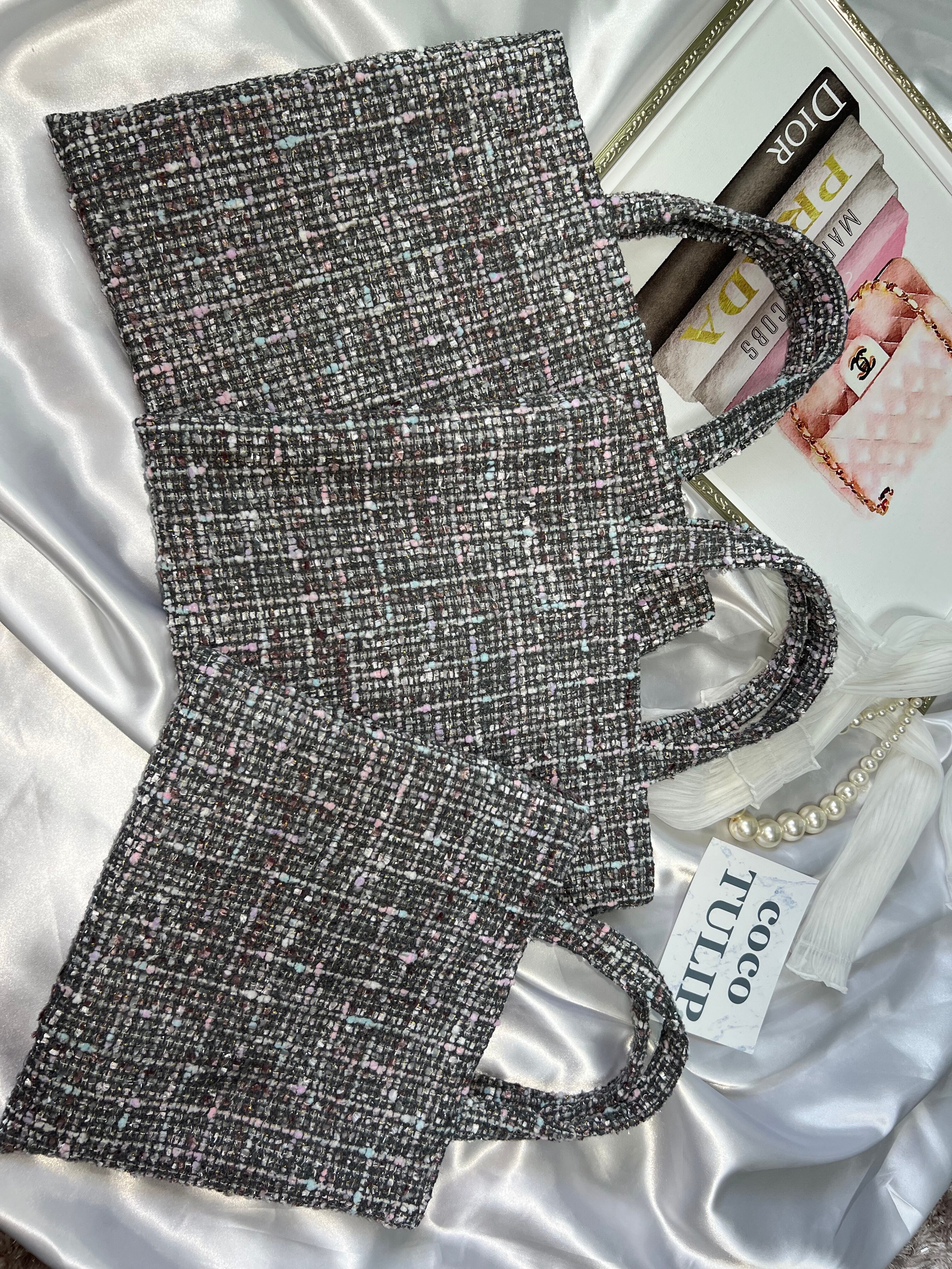 柔らかく落ち着いたグレーに、さりげないラメが可愛いツイードです。