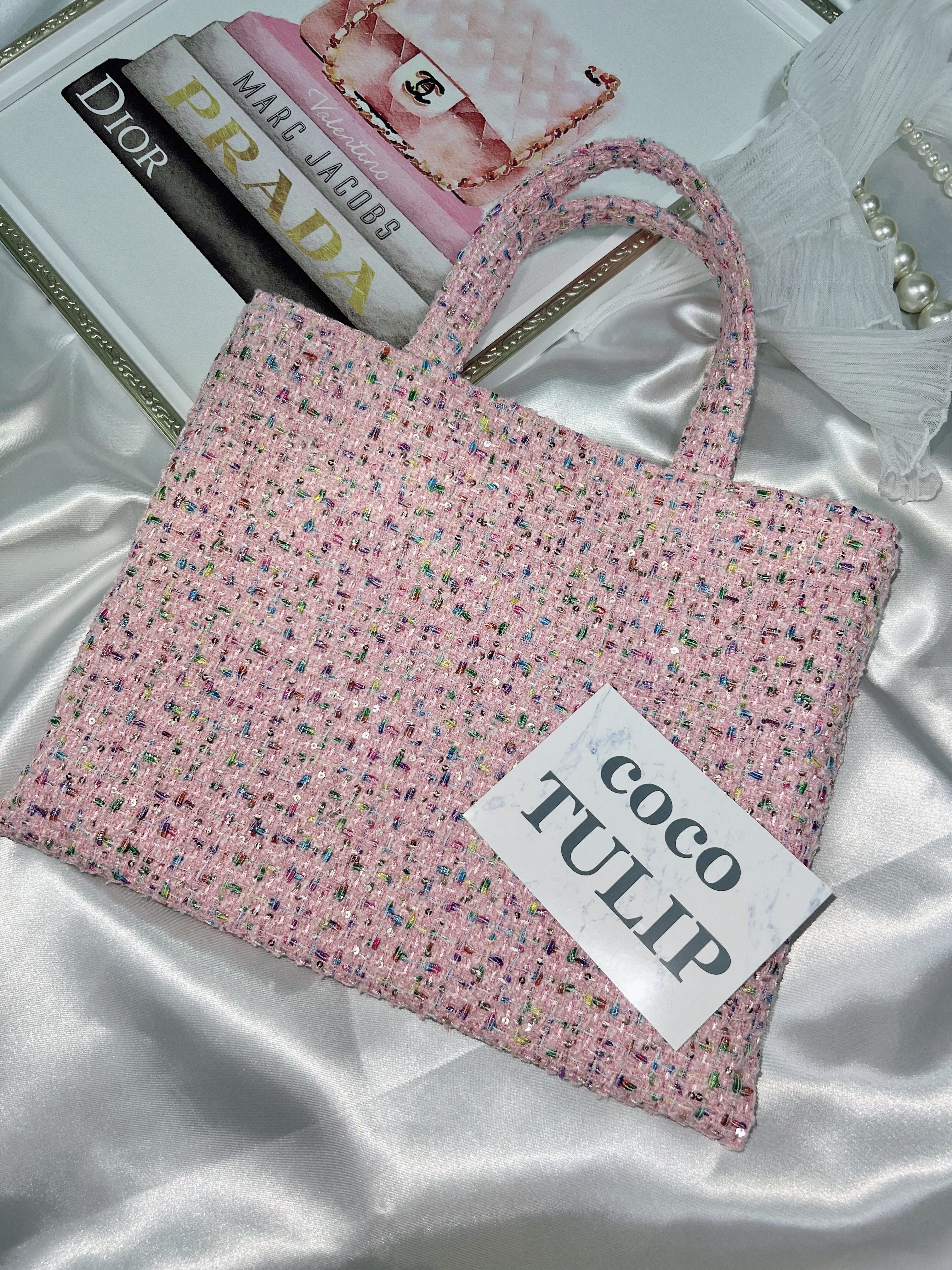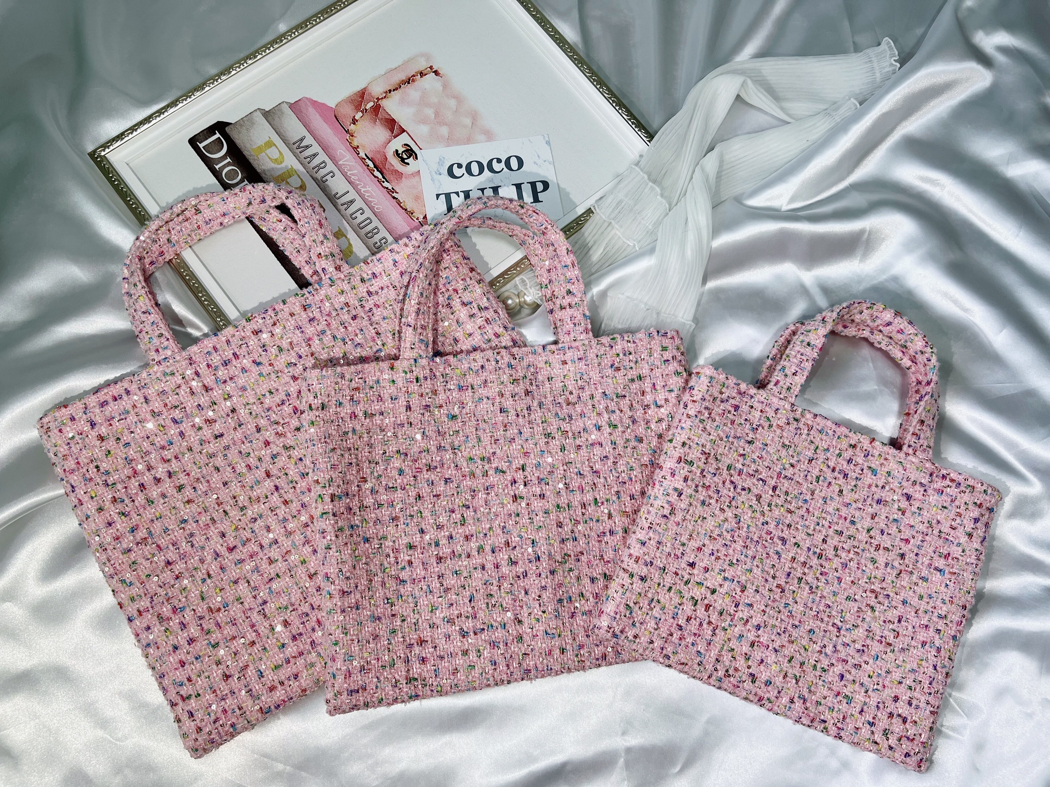 【pink M】裏地:ピンク ツイードバッグ