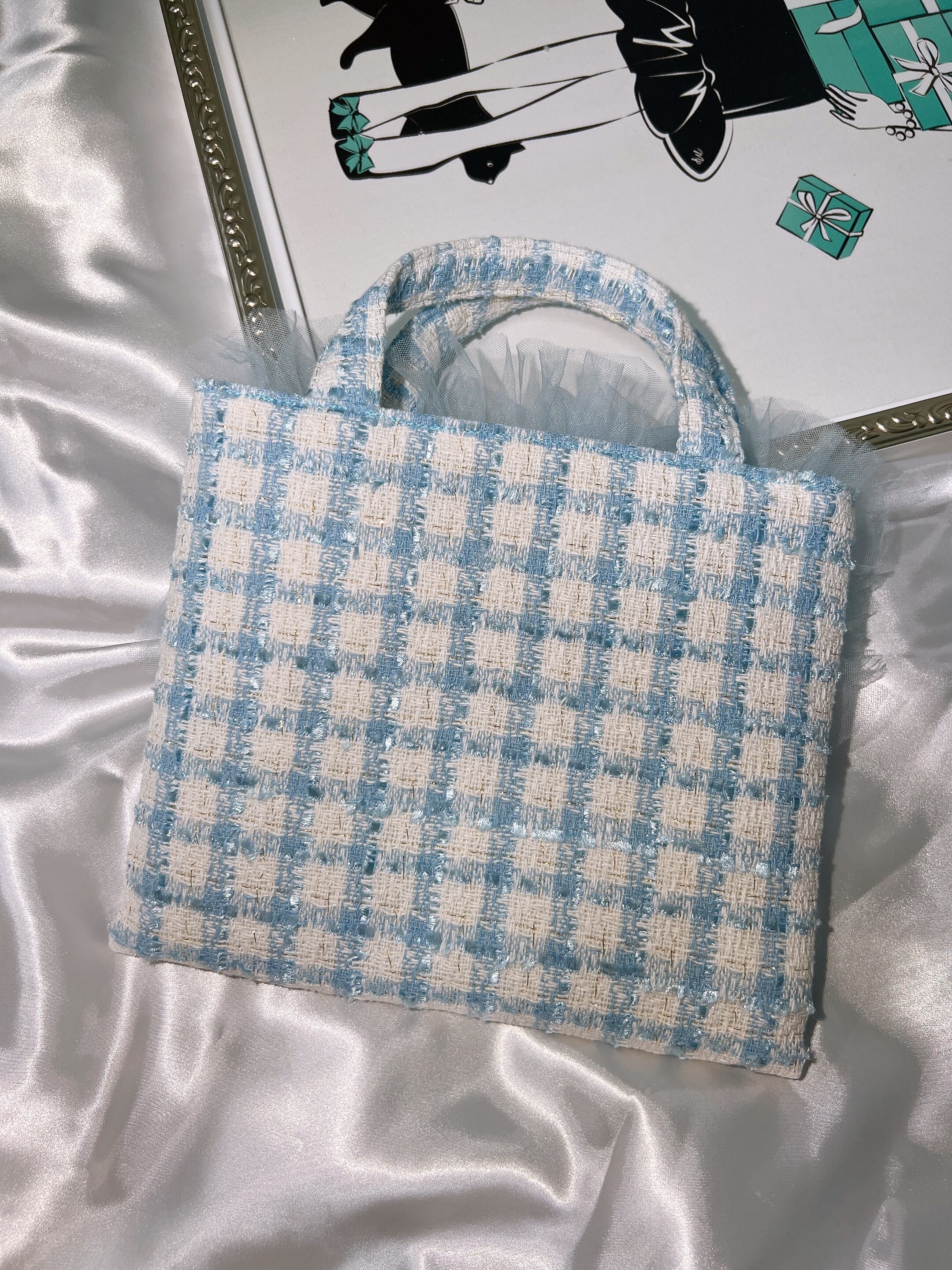 ツイードバッグミニミニ【rightBlue×フリル】裏地:水色