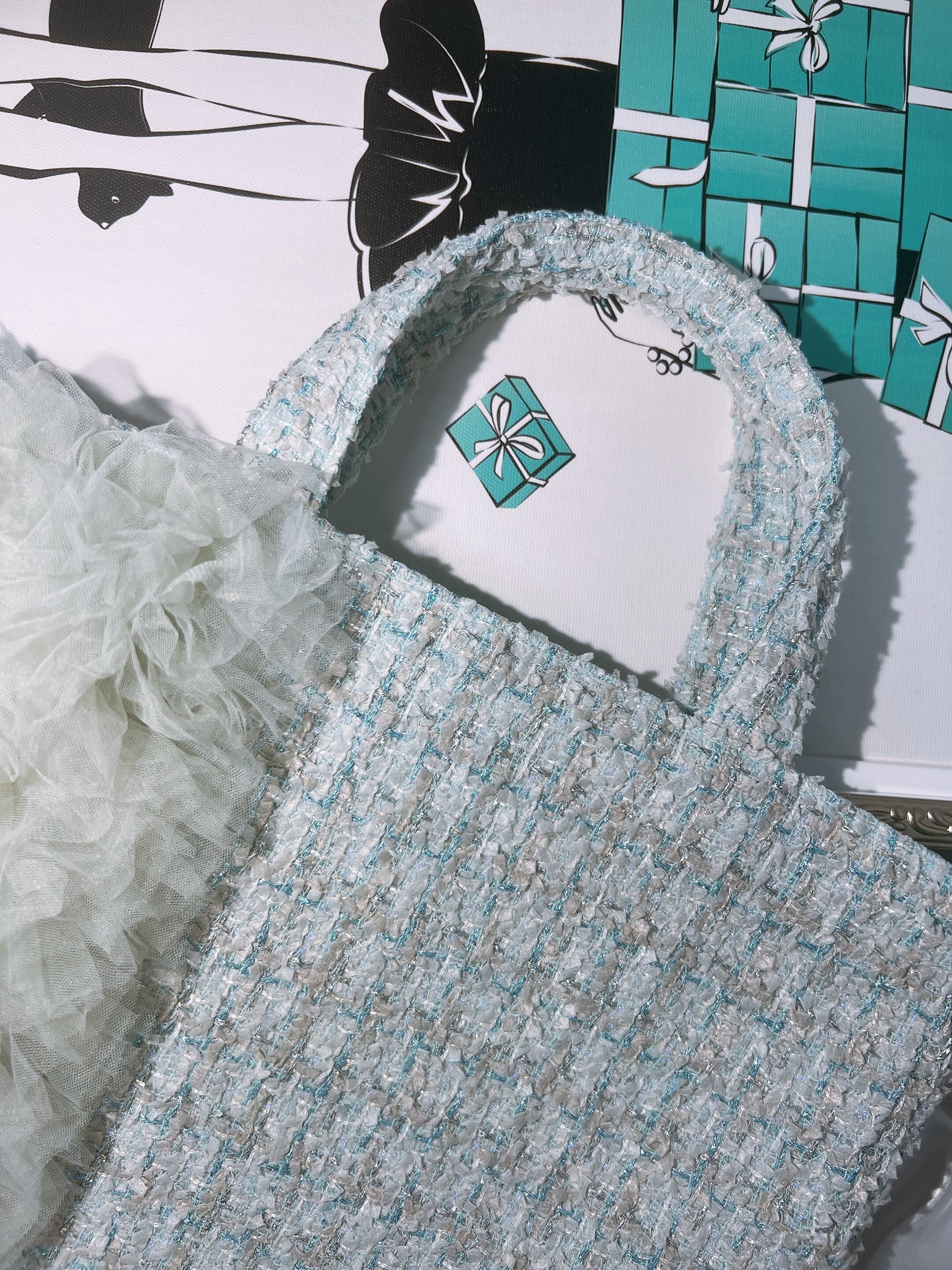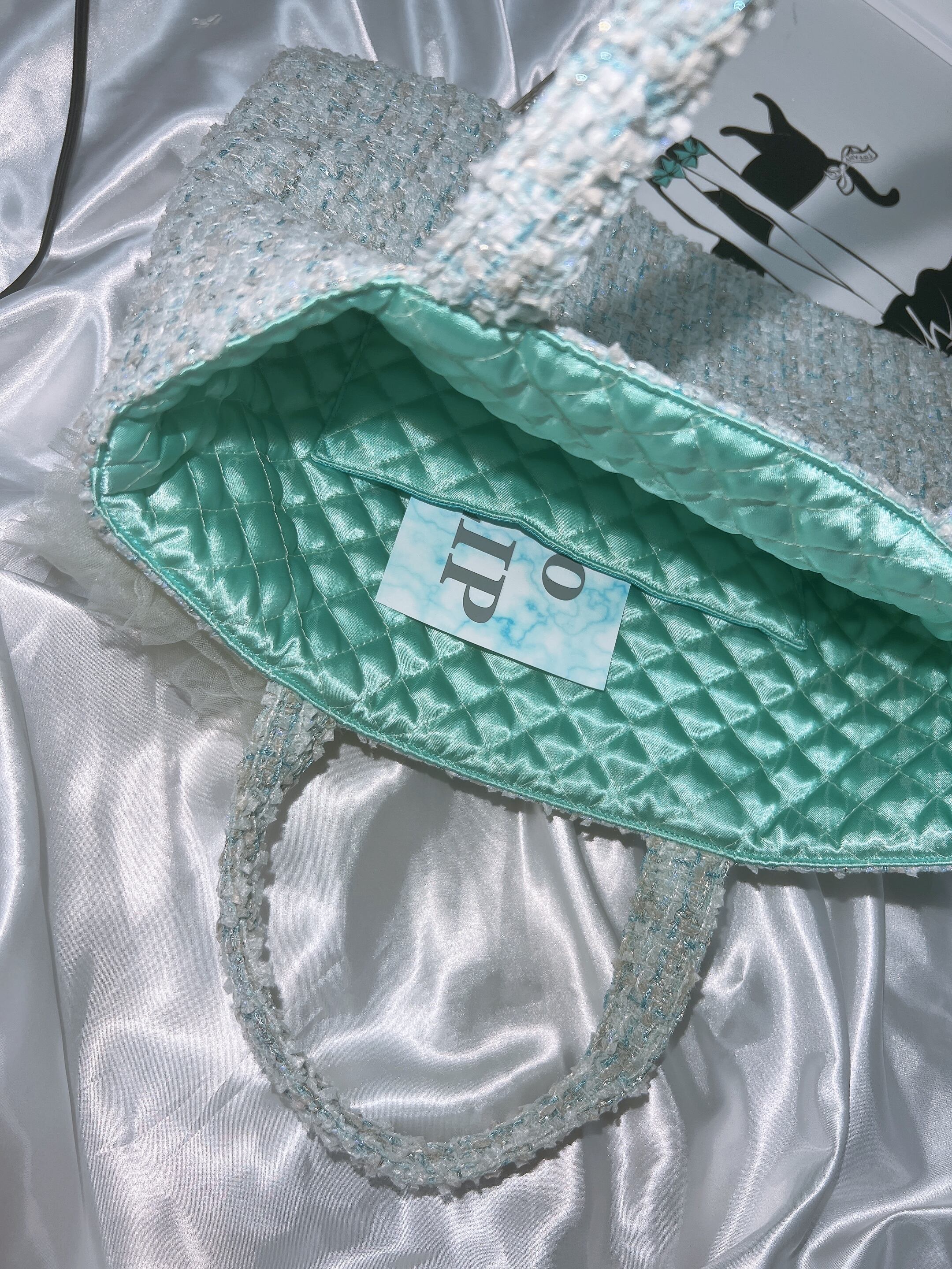 ツイードバッグM【green×フリル】裏地:ミント