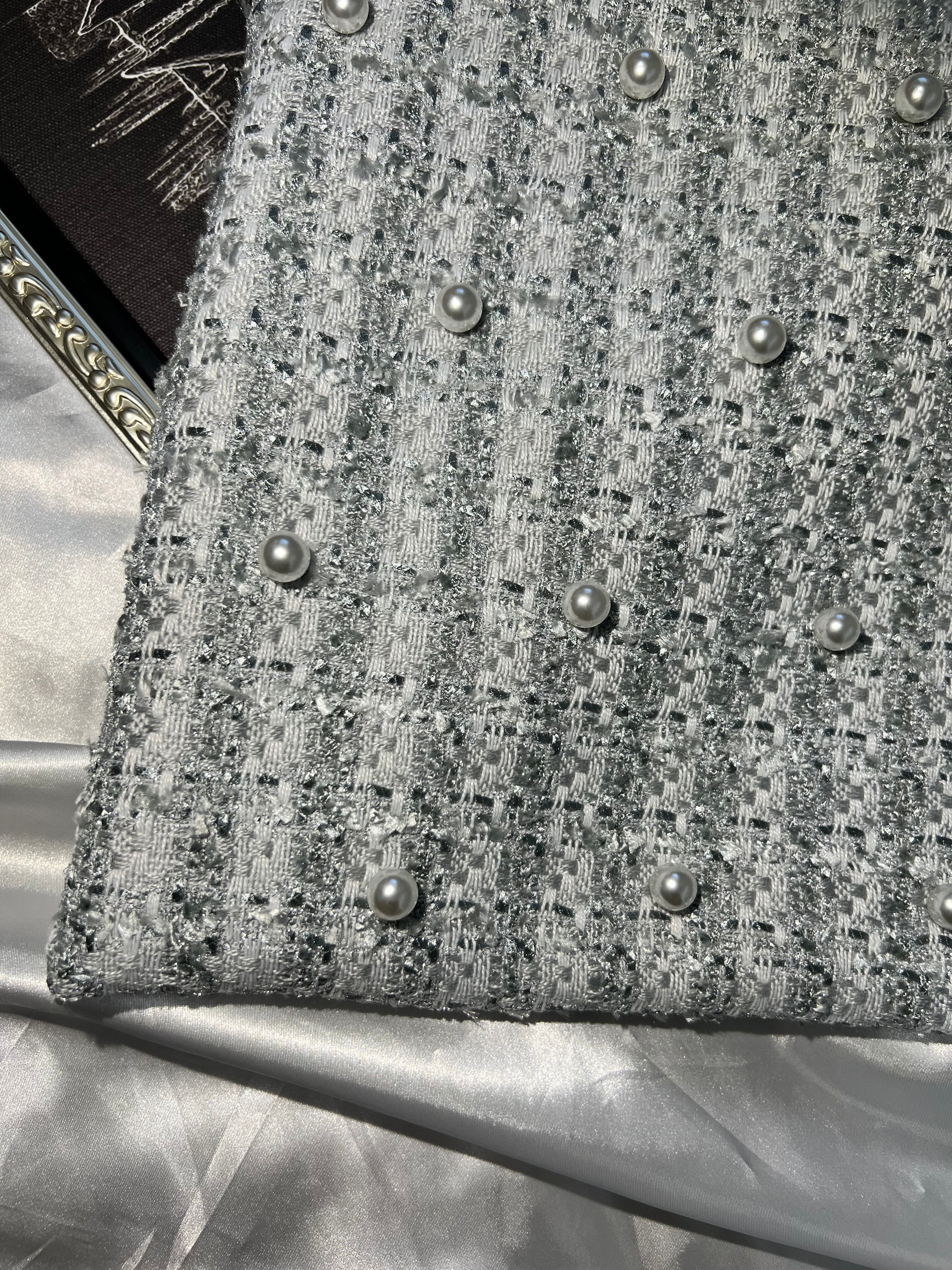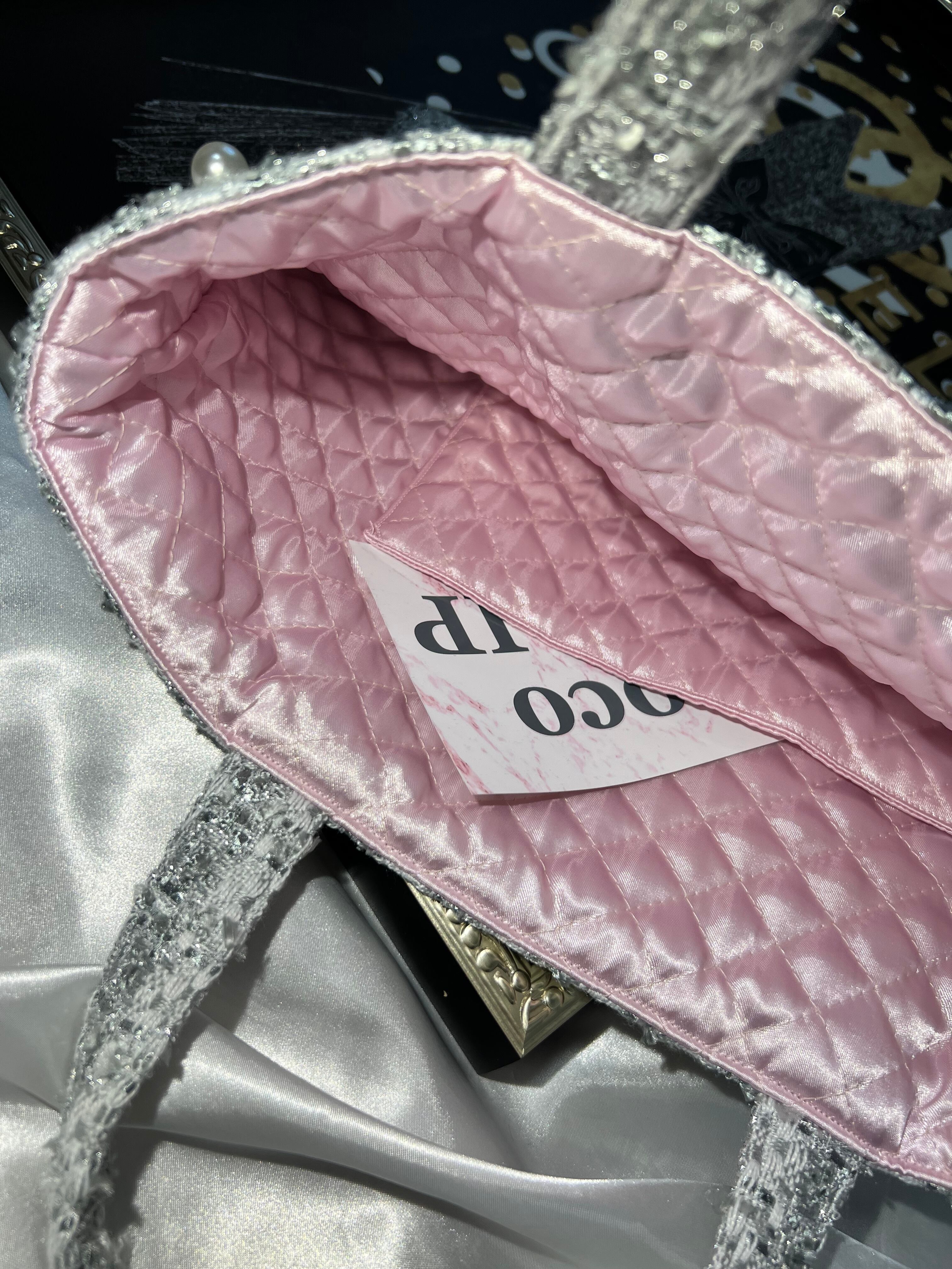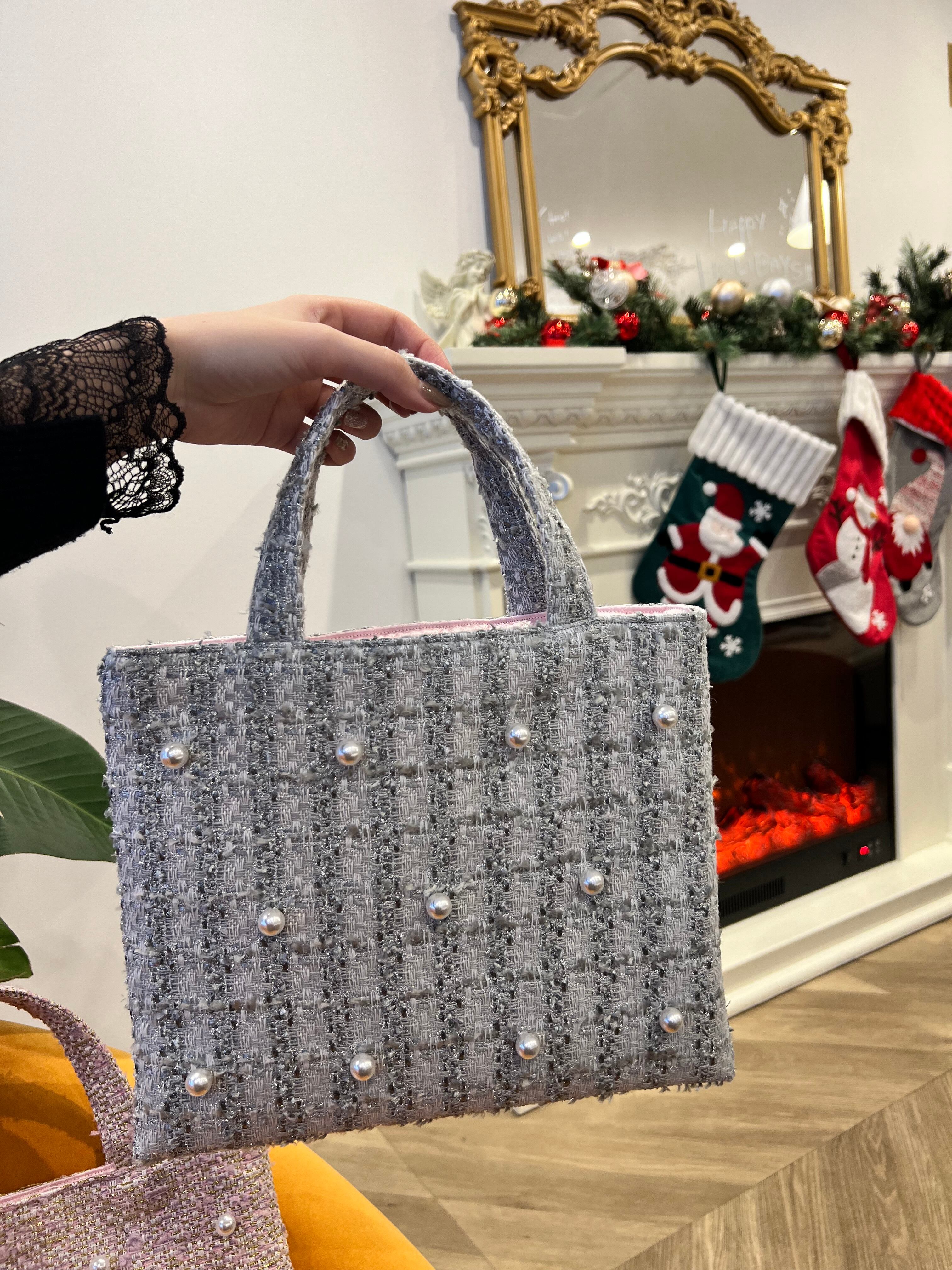 パール付【シルバーツイードM】裏地:ピンク