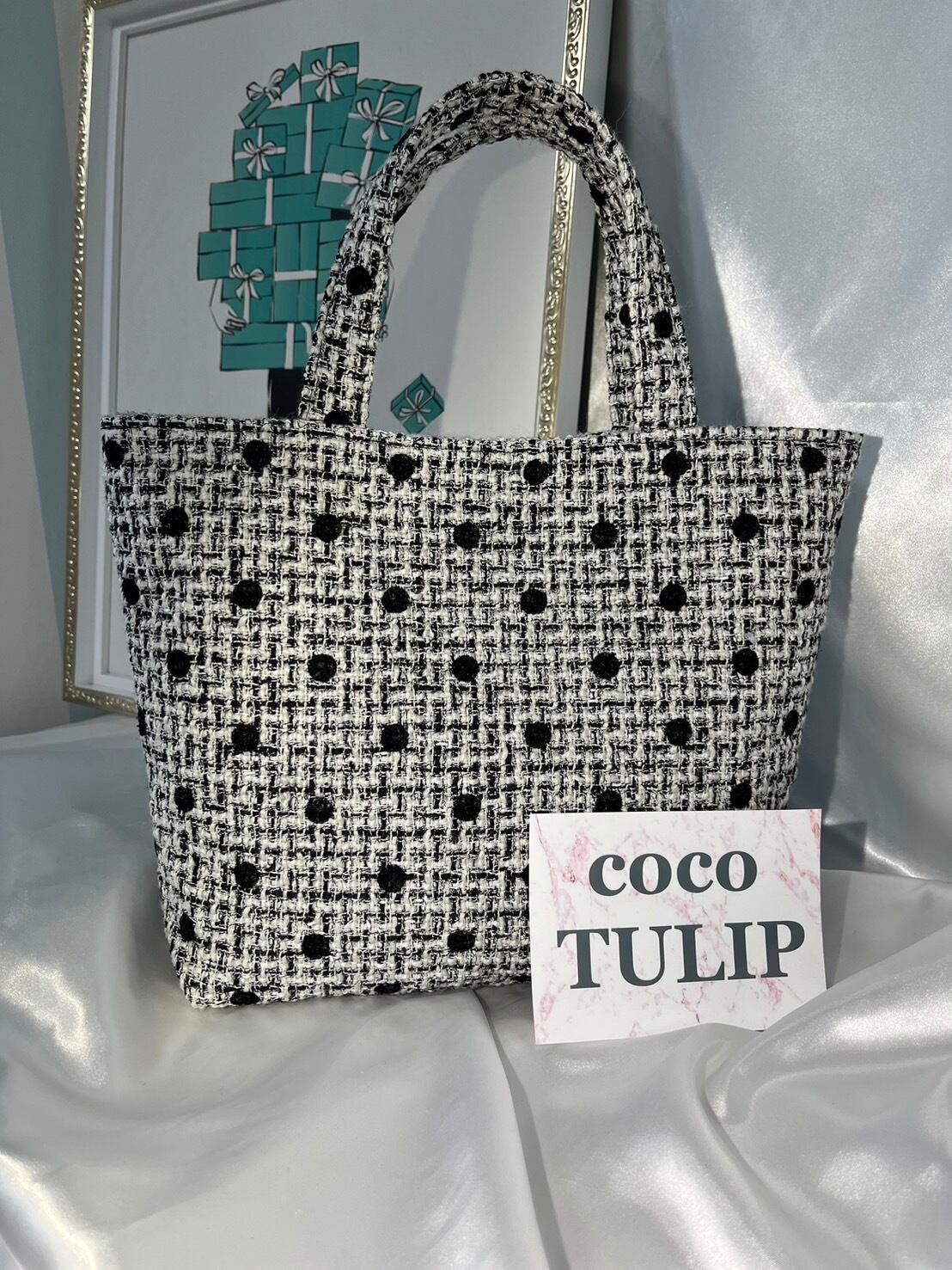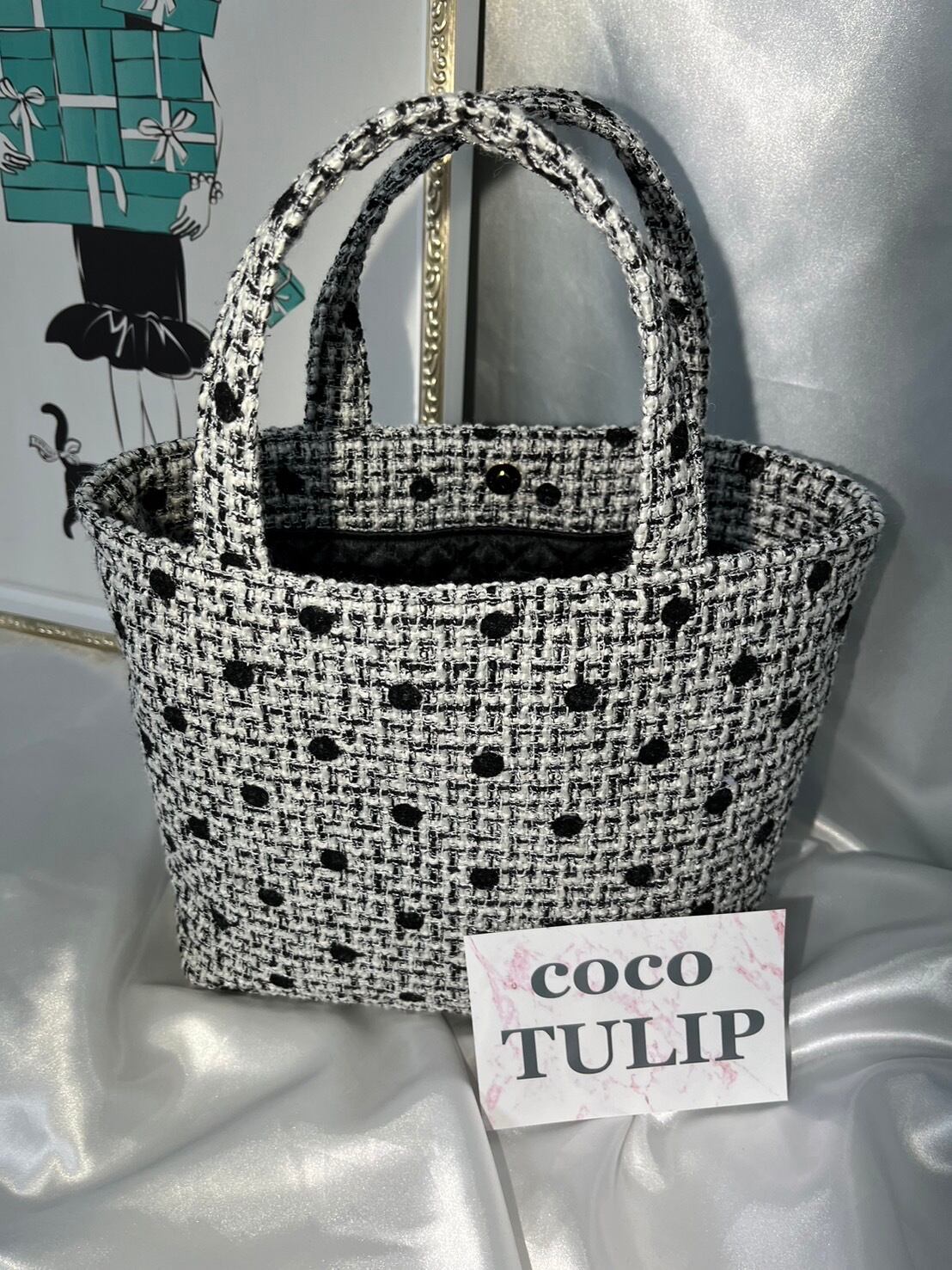 マチ付きbag【ドットツイード】裏地:ブラック