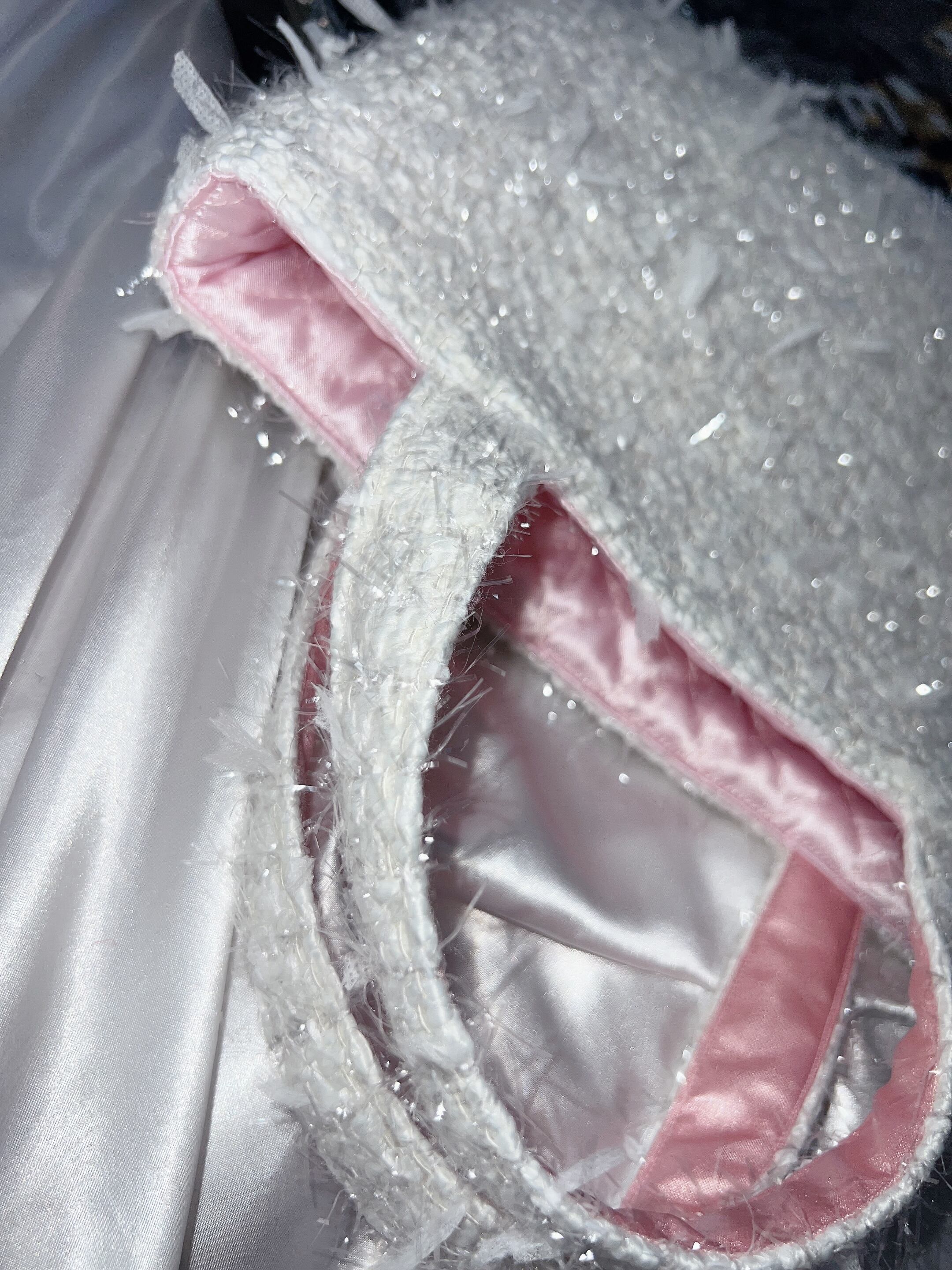 ふんわり可愛いキルティング素材もサテンキルティングにすることで華やか。