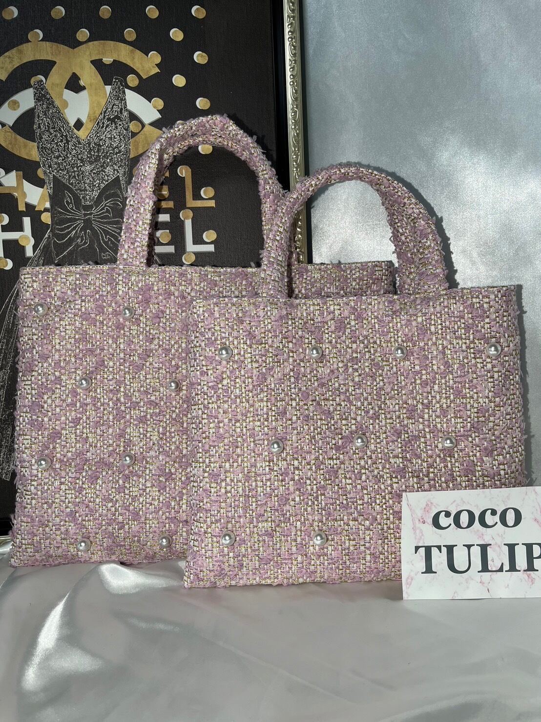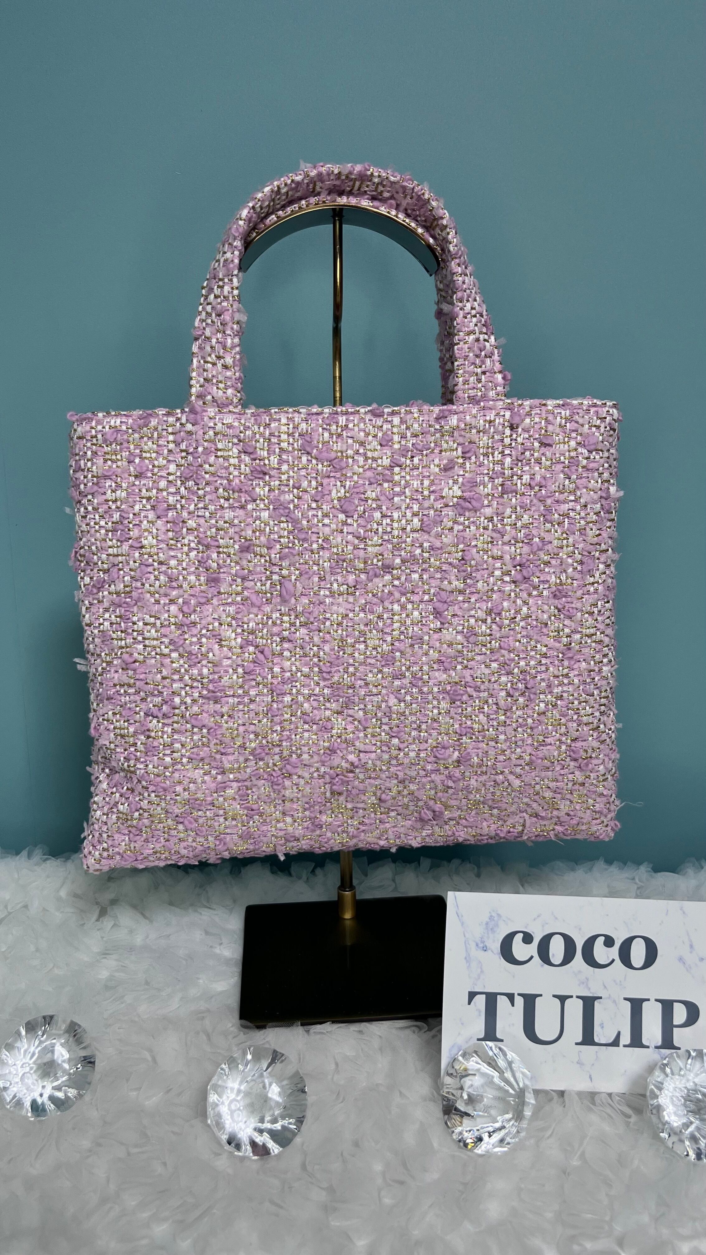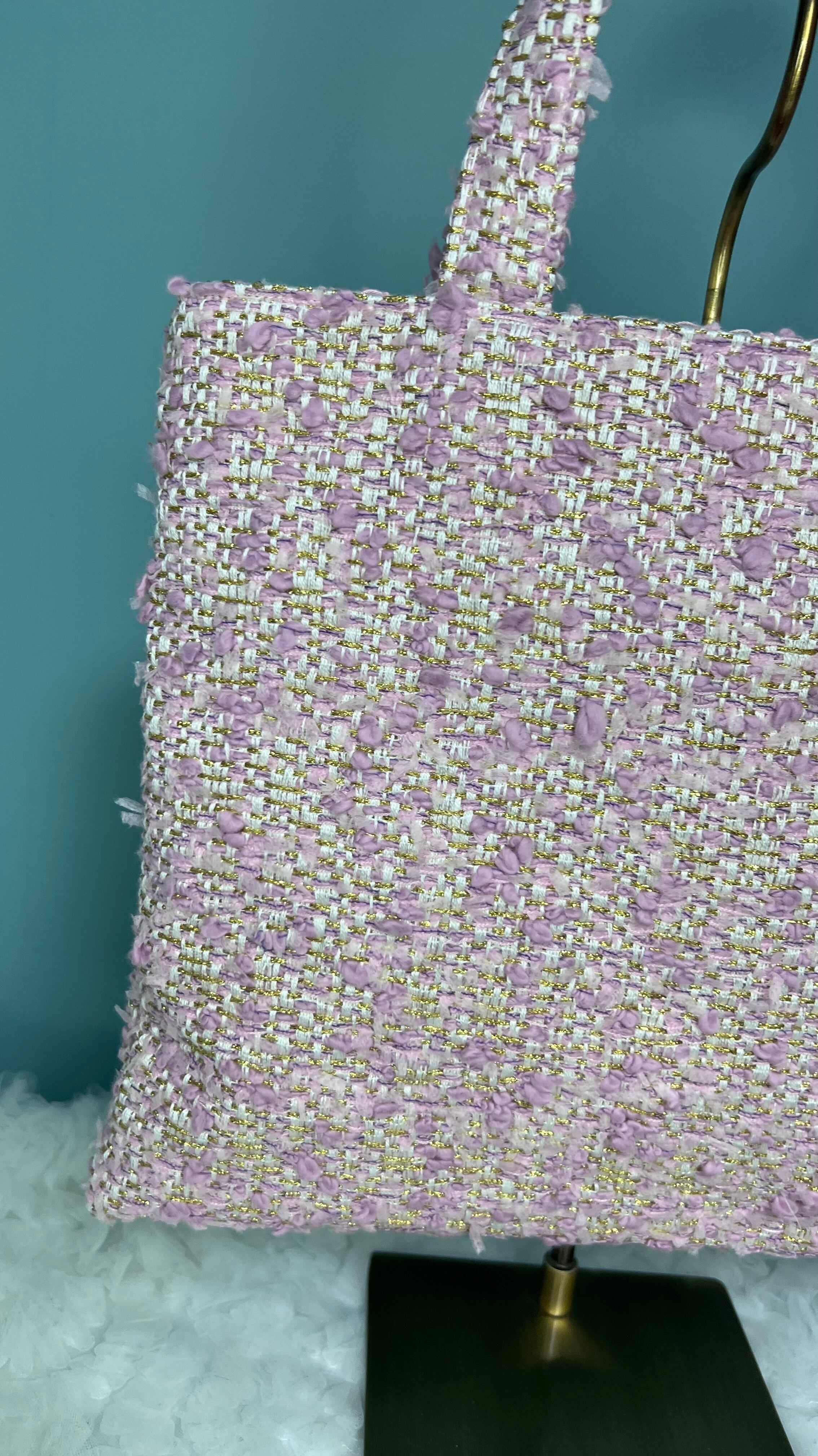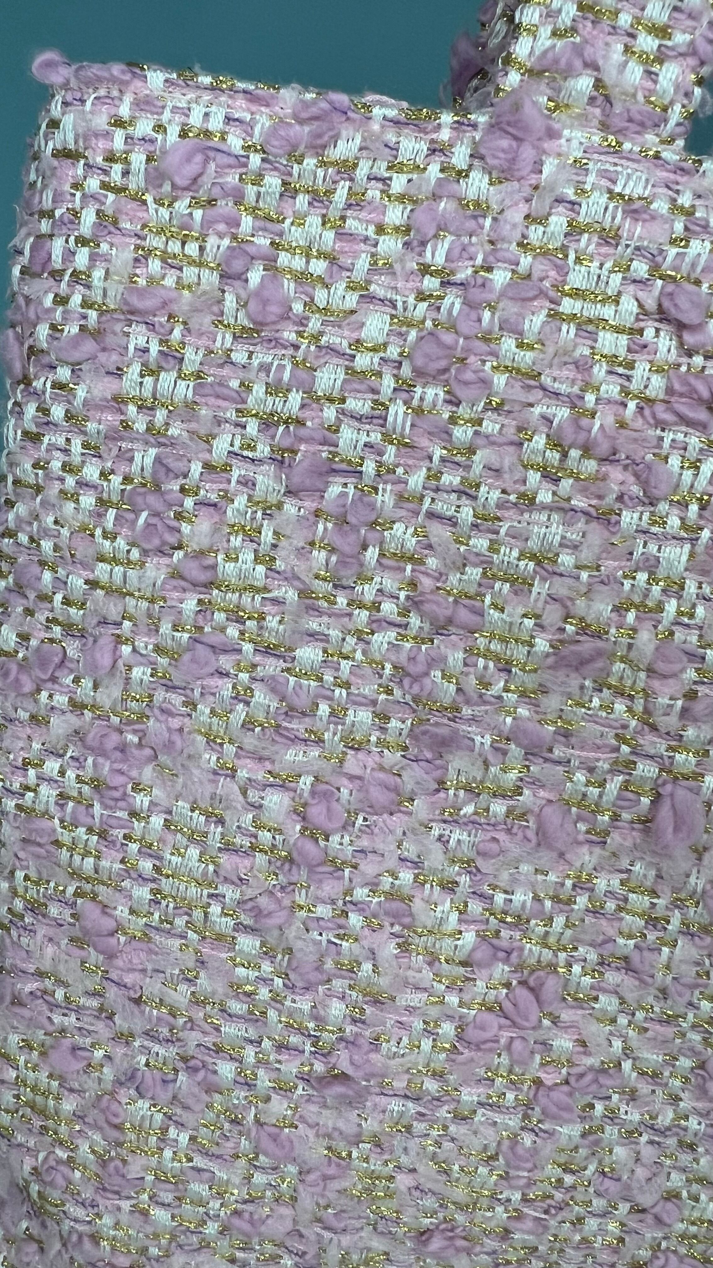 ピンクにゴールドの糸がキラッと輝く品のあるツイードバッグ。