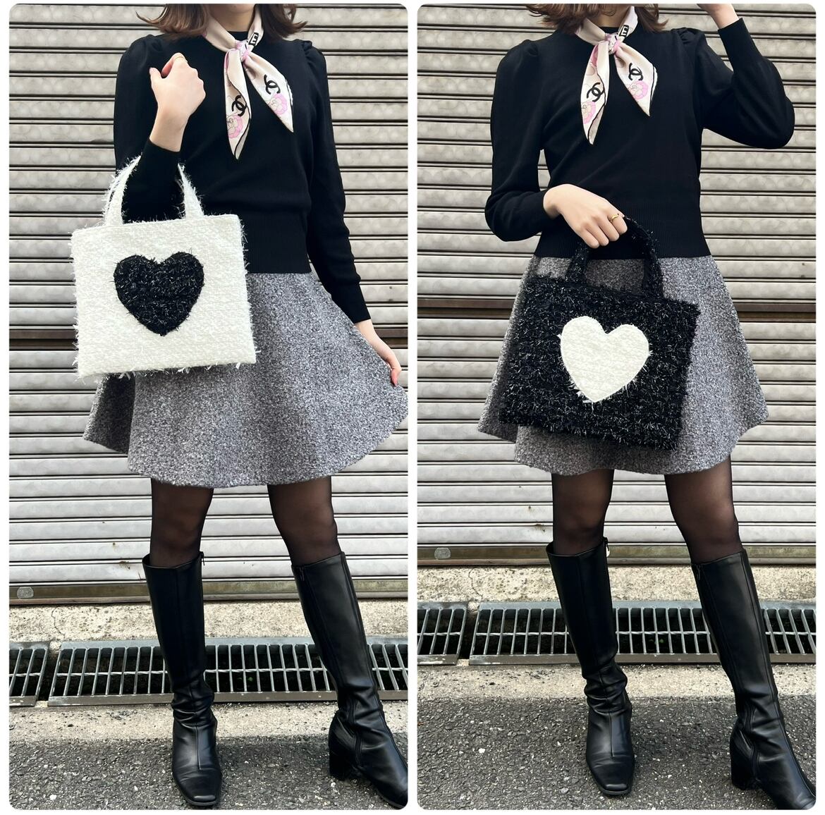 黒ハート【ホワイトツイードS】裏地:ブラック