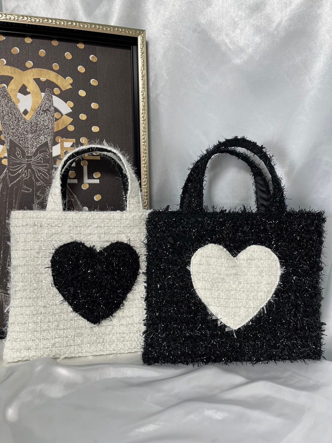 キラキラもけもけツイードにハートマークがとっても可愛いツイードバッグ✨