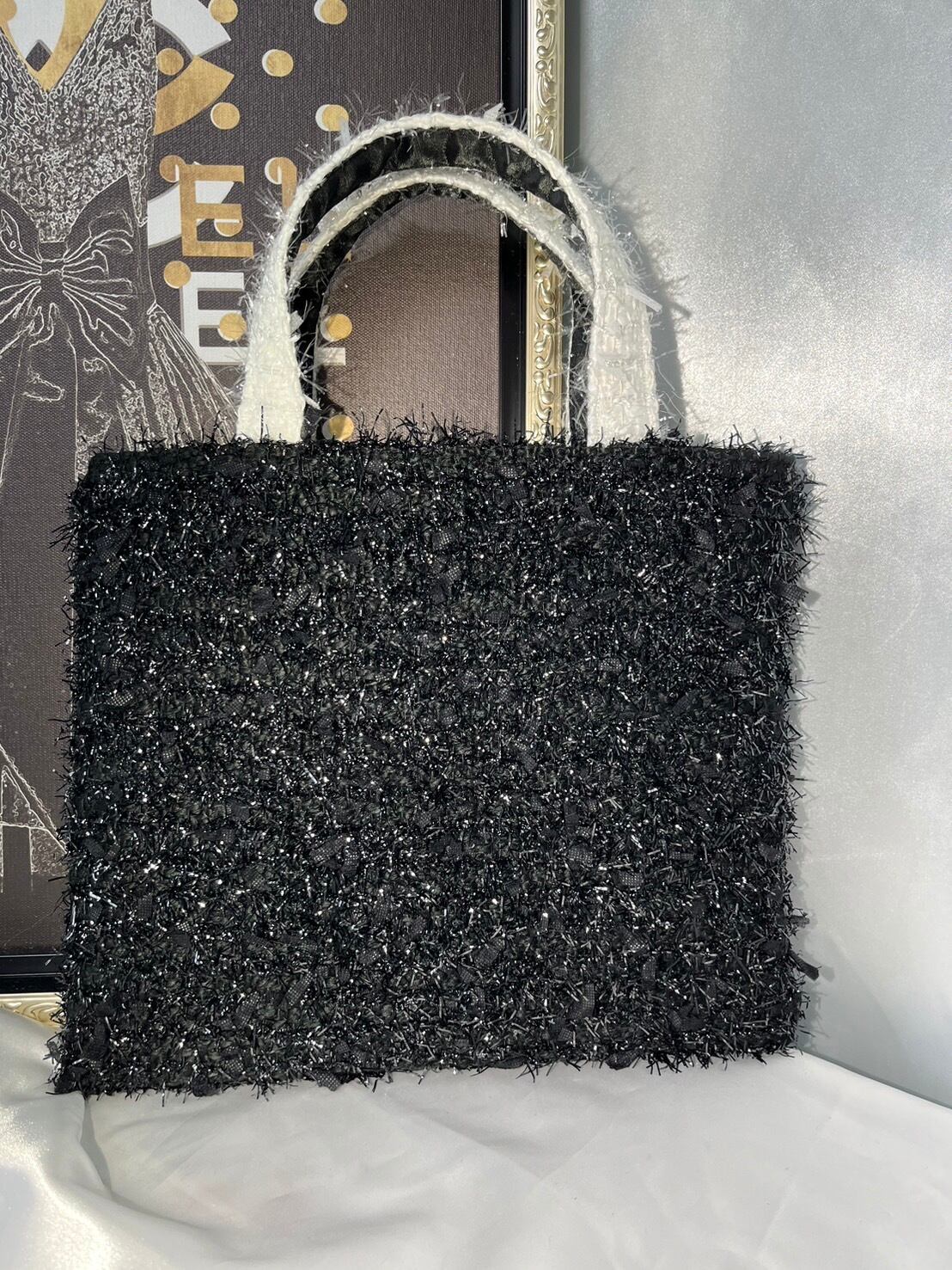 キラキラもけもけツイードにハートマークがとっても可愛いツイードバッグ✨