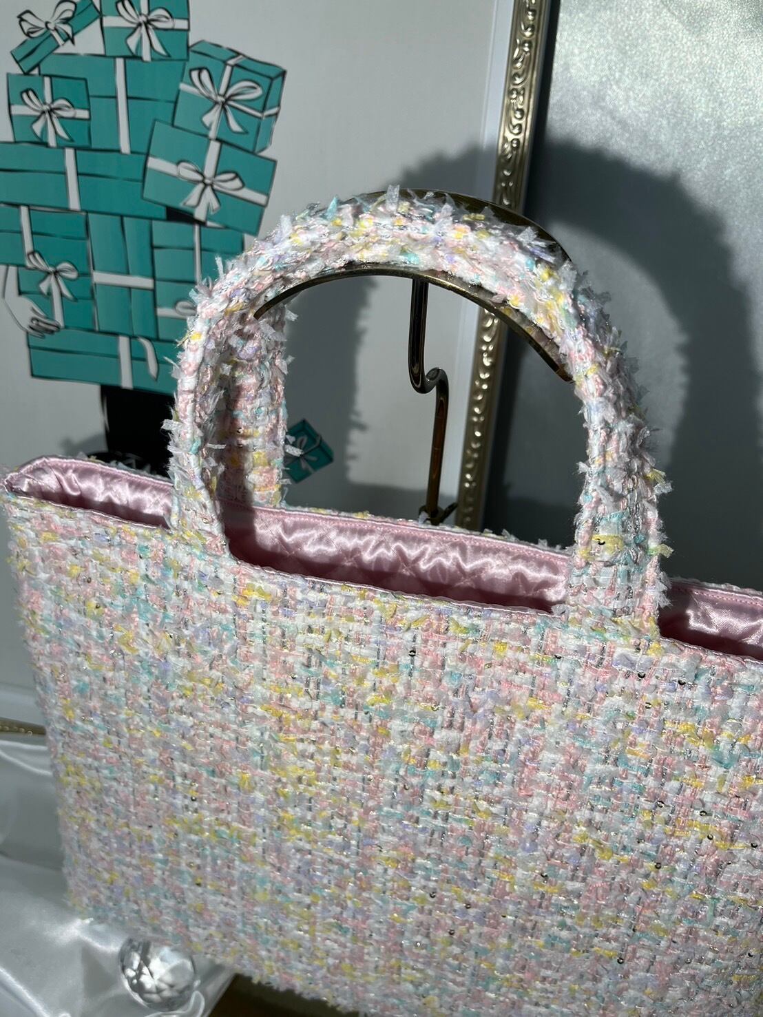 裏地:ピンクサテンキルティング
