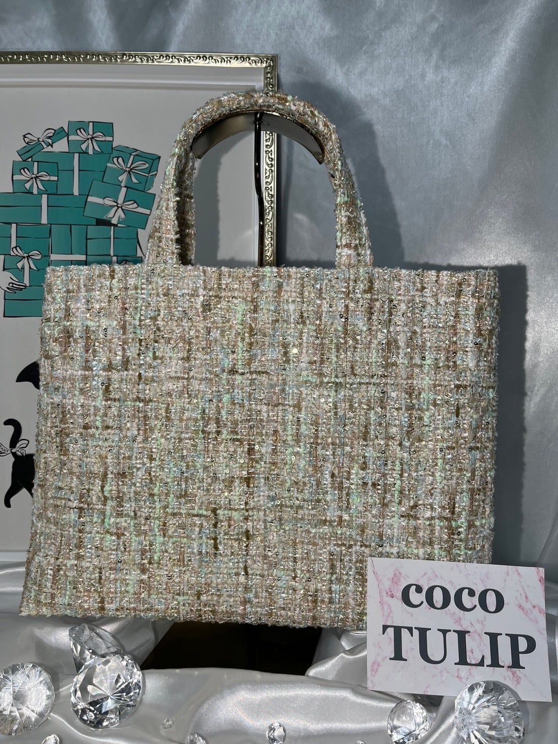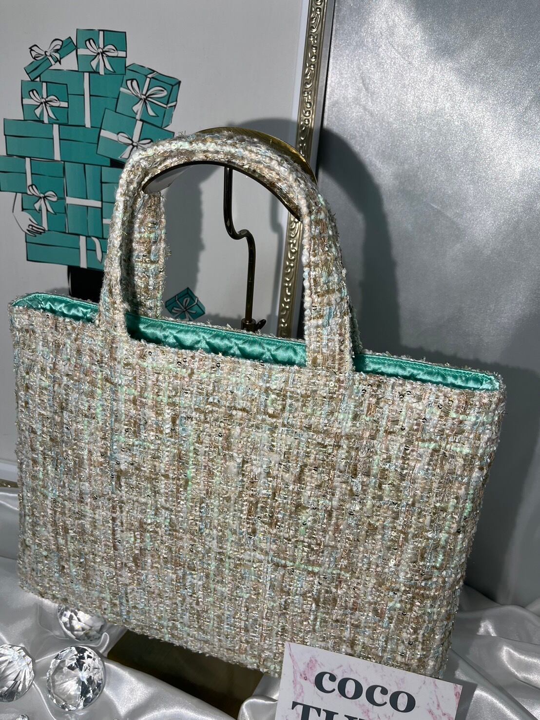 スパンコール付ベージュキラキラMIX【M】裏地ミント