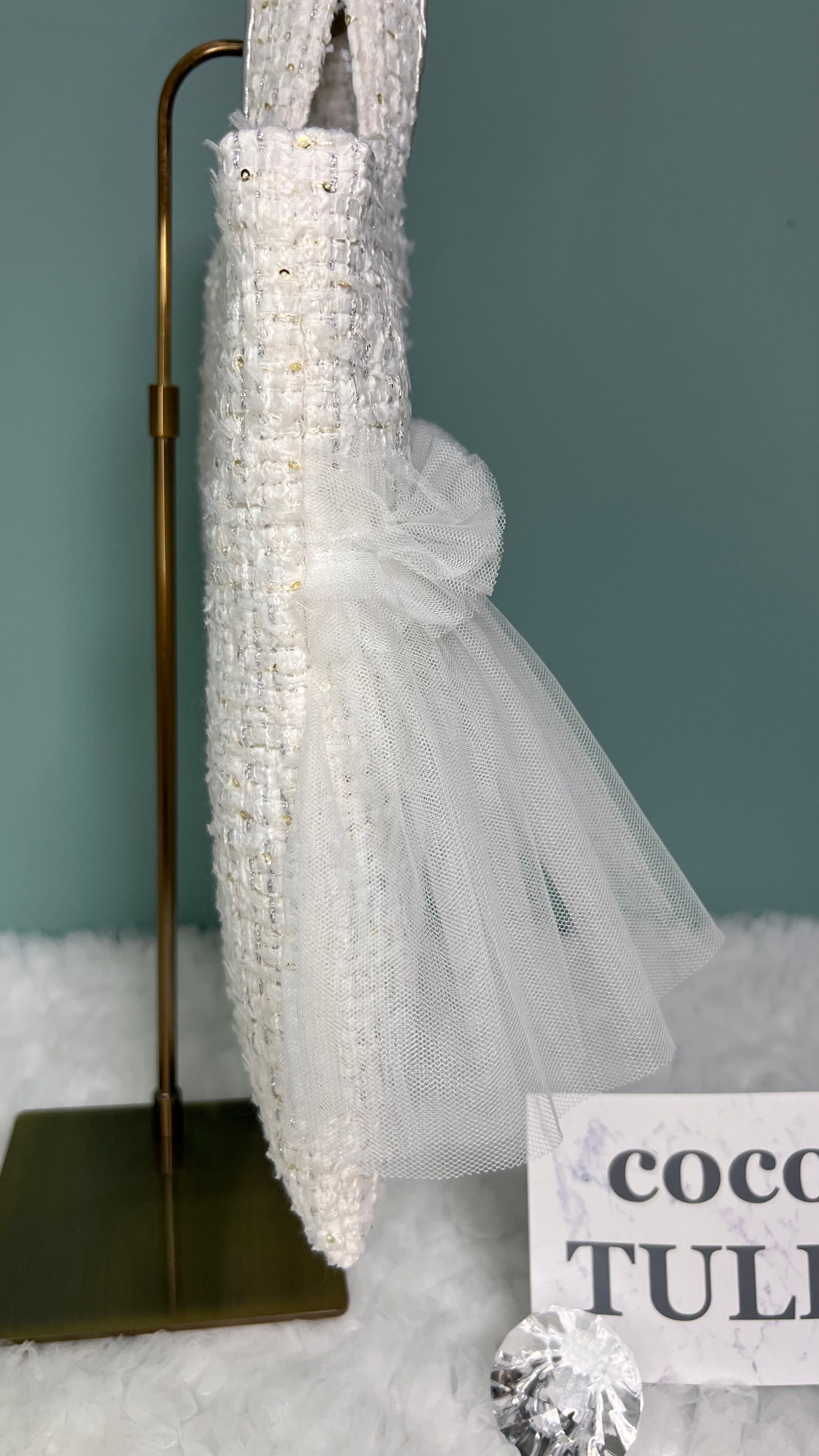 小さいスパンコールが織り込まれていて上品なキラキラ感が可愛いツイード!